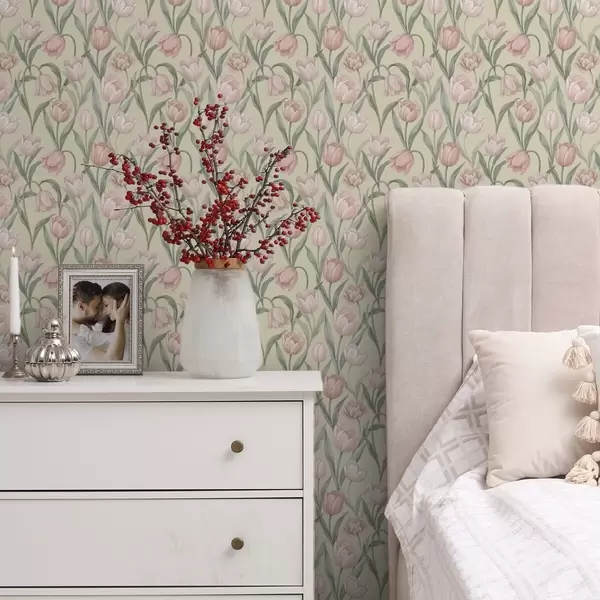 Tapeta Нежно ружичасти тулипани на нежној беж позадини бр. a00589