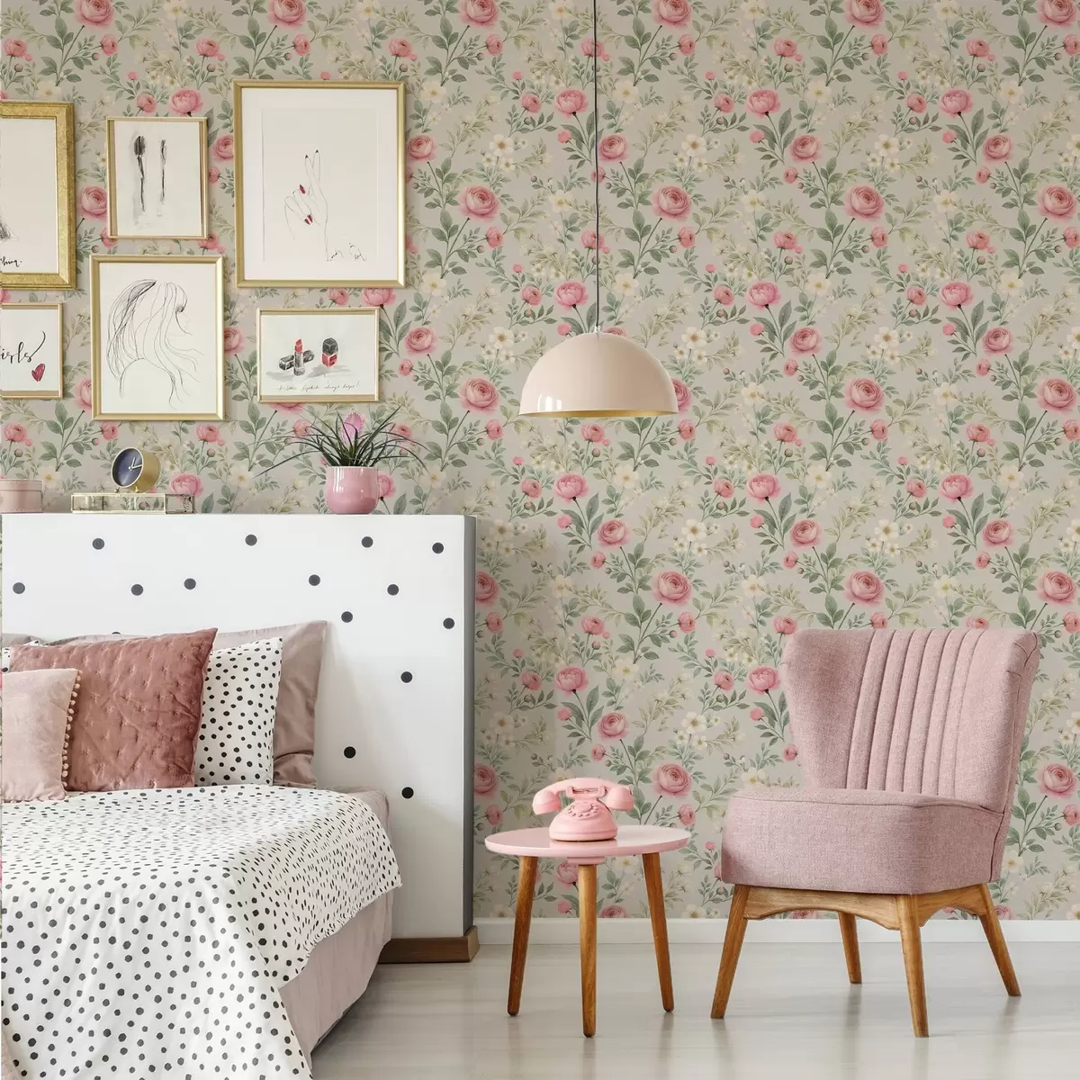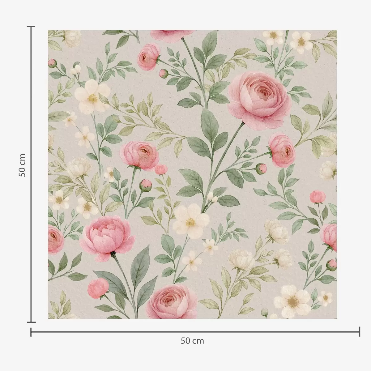 Tapeta Акварел божури и бело цвеће на сиво-беж боји бр. a00592
