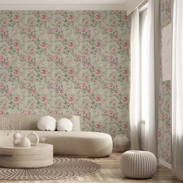 Tapeta Акварел божури и бело цвеће на сиво-беж боји бр. a00592