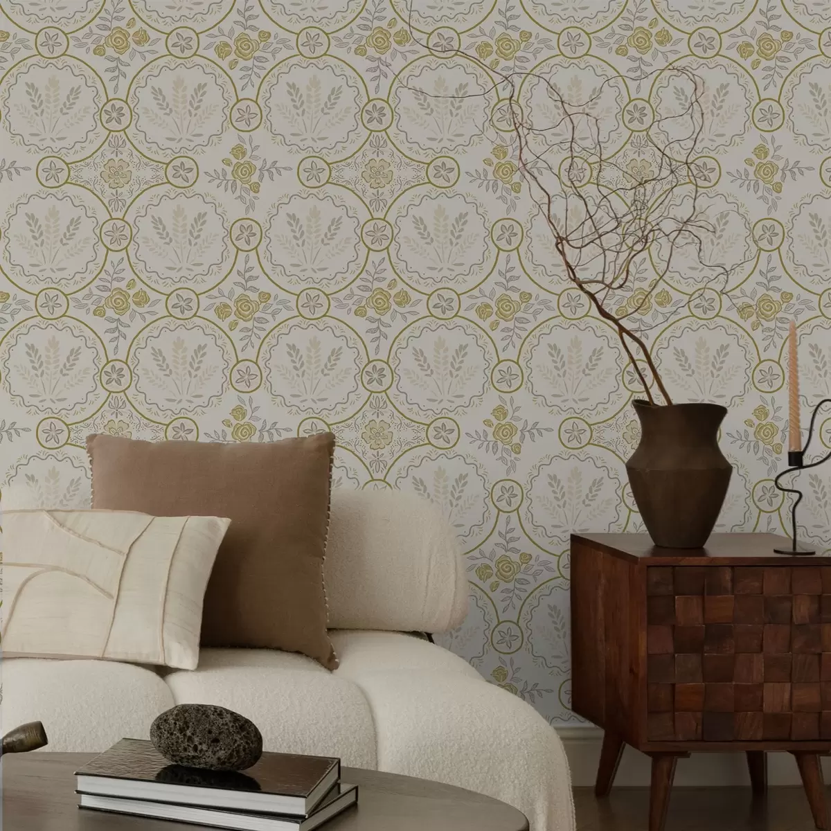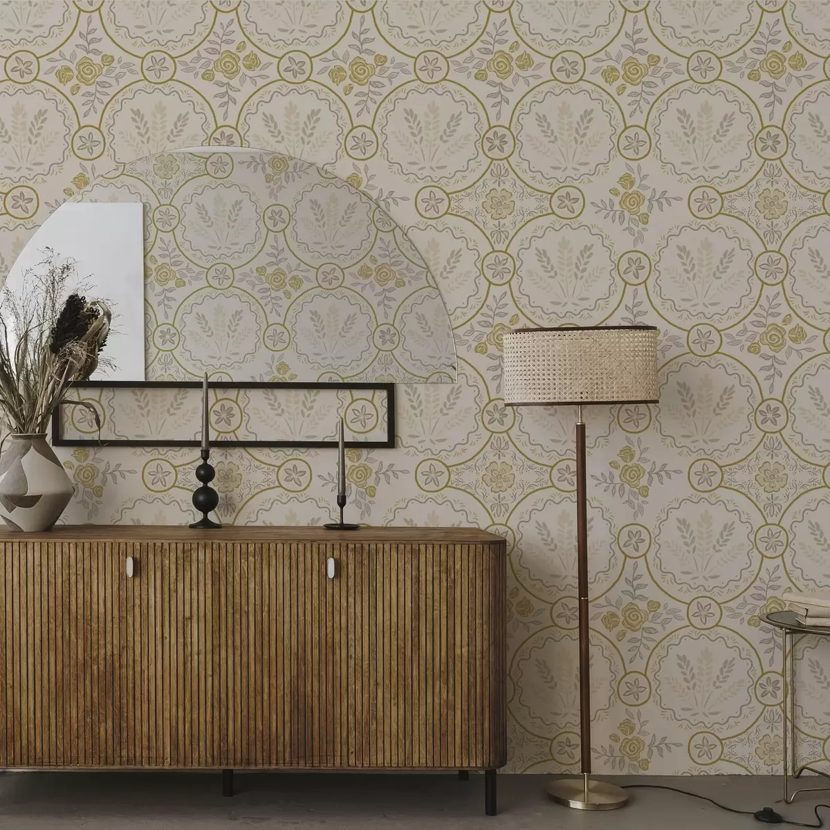 Tapeta Ретро украс са пшеницом и ружама бр. a00595
