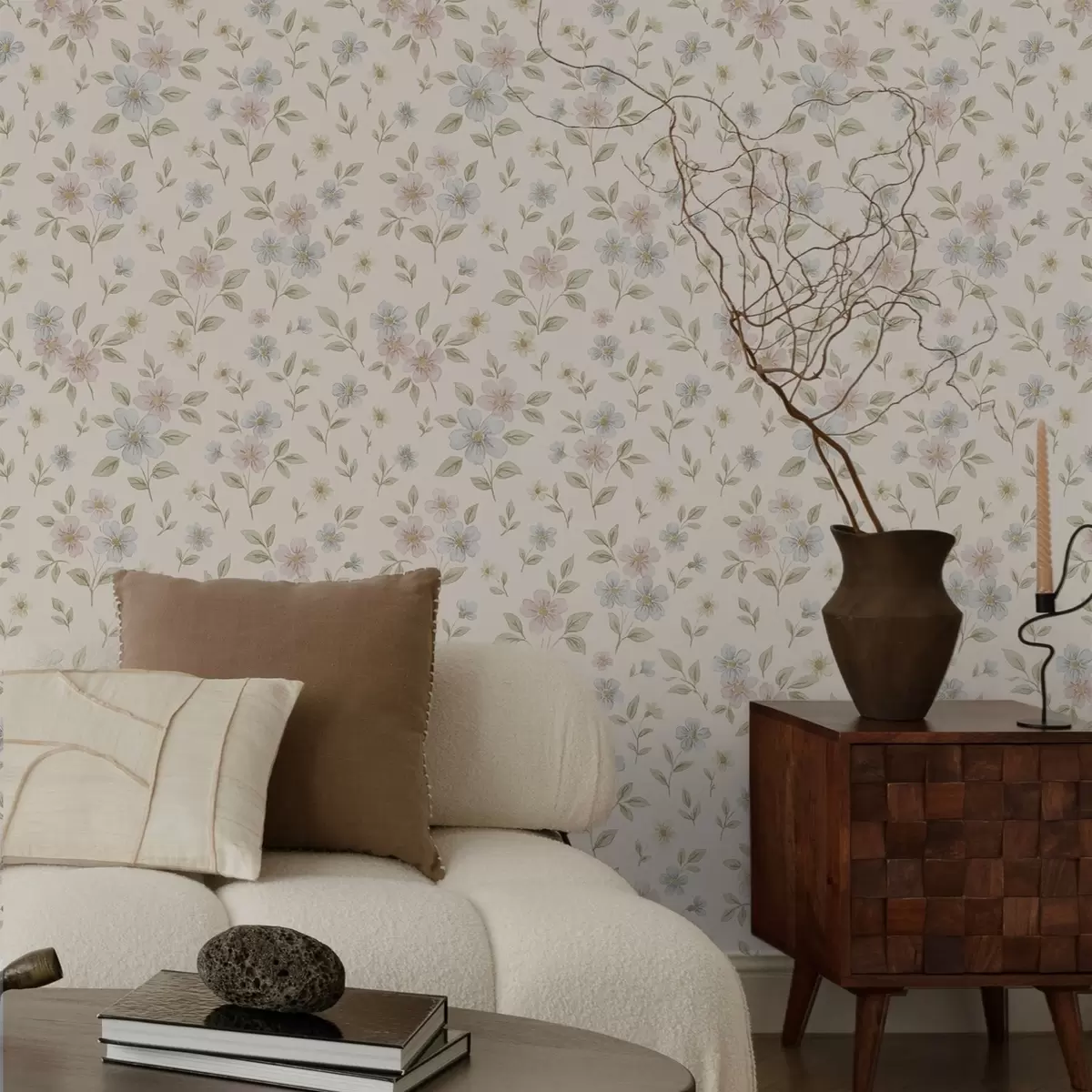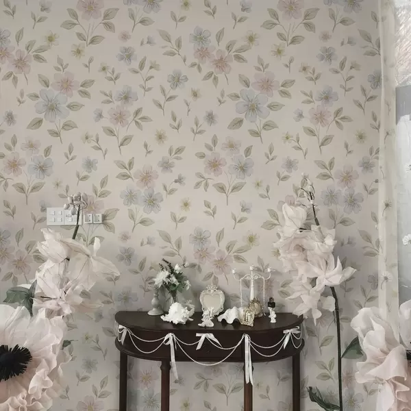 Tapeta Пастелно ливадско цвеће на кремастој позадини бр. a00596