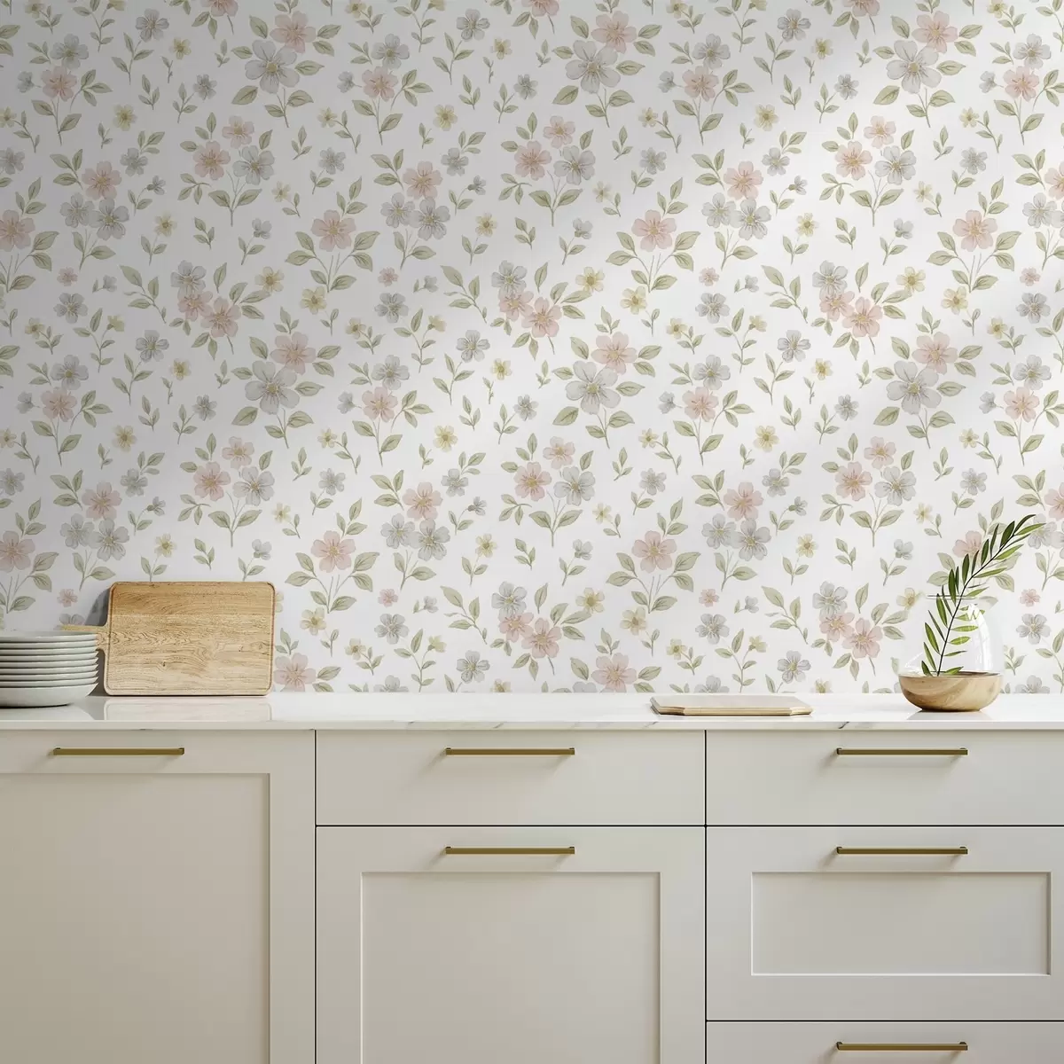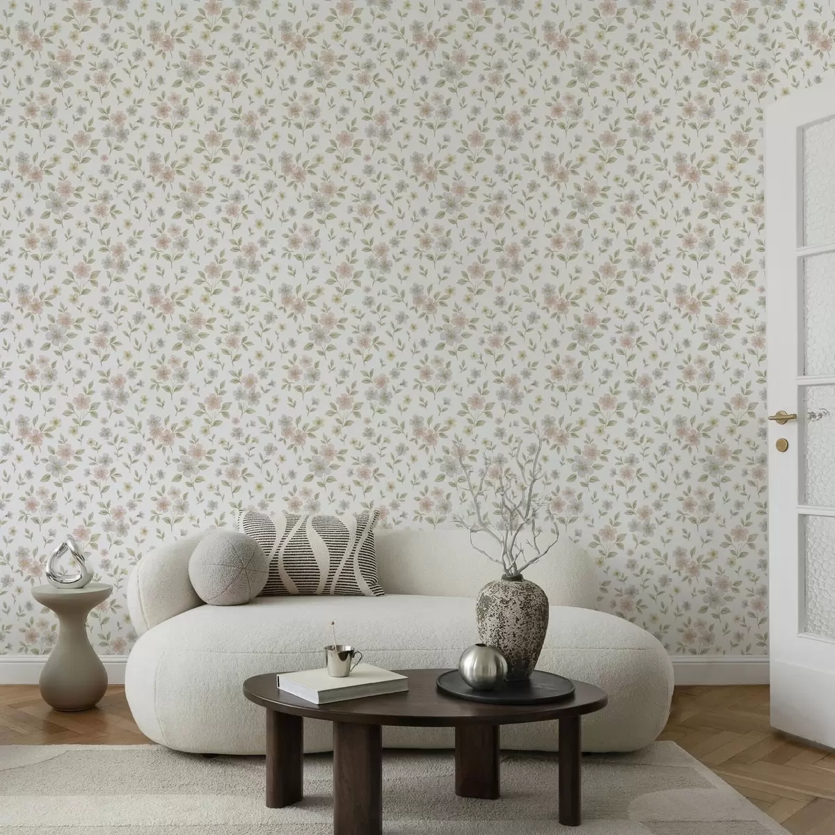 Tapeta Мали акварелни цветови у пастелима на белој боји бр. a00596v1