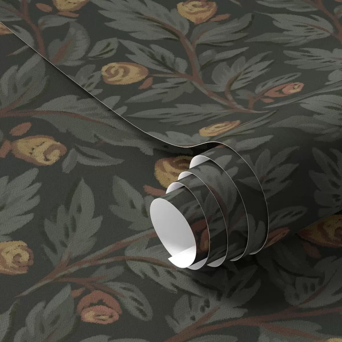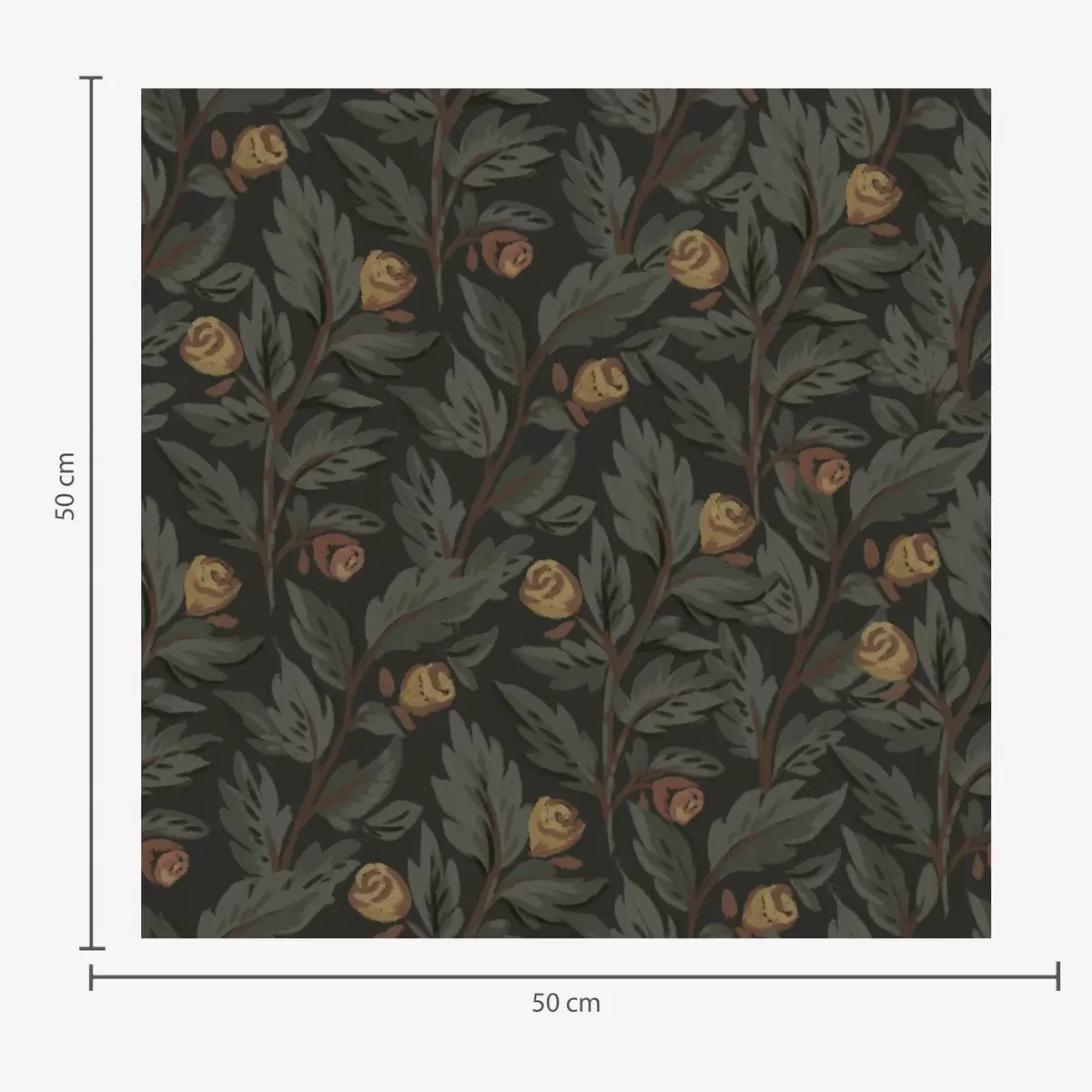 Tapeta Тамни цветни узорак са жутим пупољцима и листовима бр. a00598