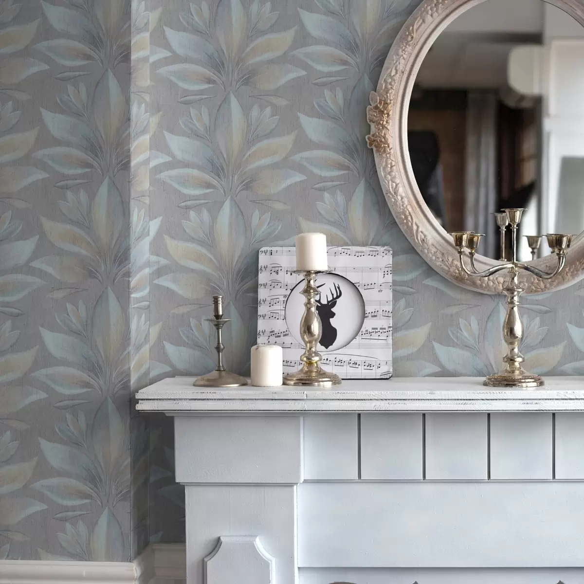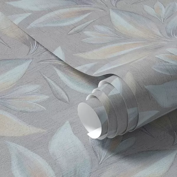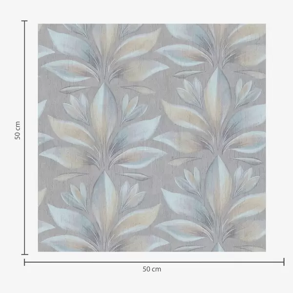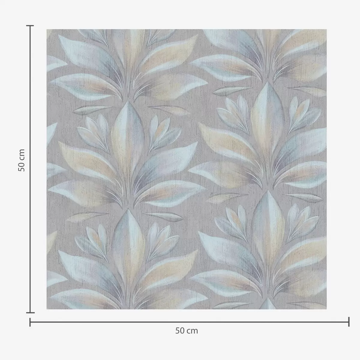 Tapeta Велики стилизовани листови у плаво-песковитој палети на сивој бр. a00601