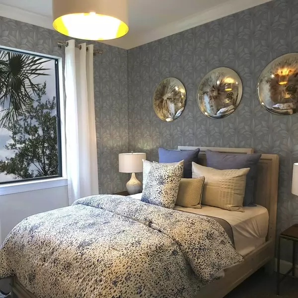 Tapeta Велики стилизовани листови у плаво-песковитој палети на сивој бр. a00601