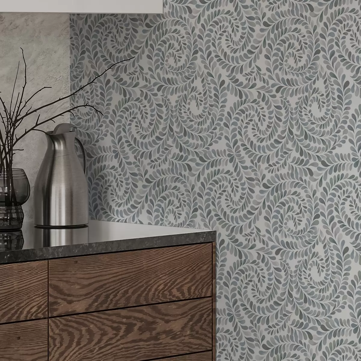 Tapeta Лиснате спирале у хладним сиво-плавим тоновима бр. a00602v1