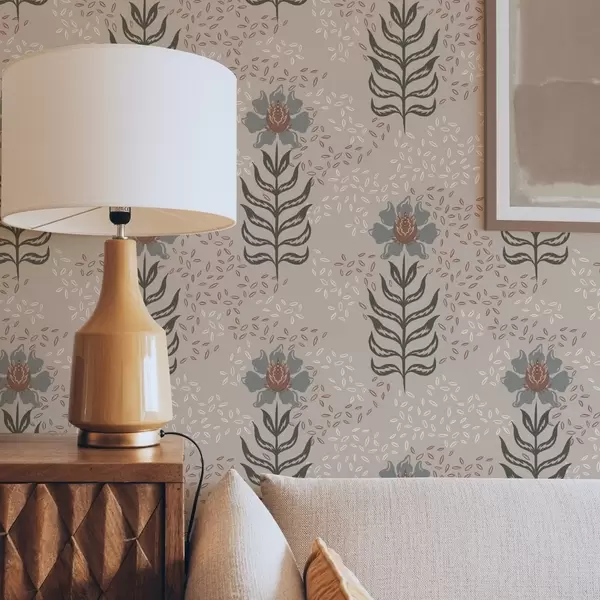 Tapeta Стилизовано цвеће и семе на топлој беж боји бр. a00604