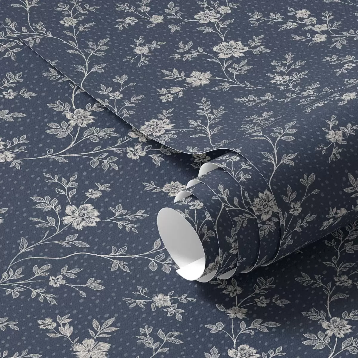 Tapeta Тамноплава позадина са танким беж гранама и цвећем бр. a00612