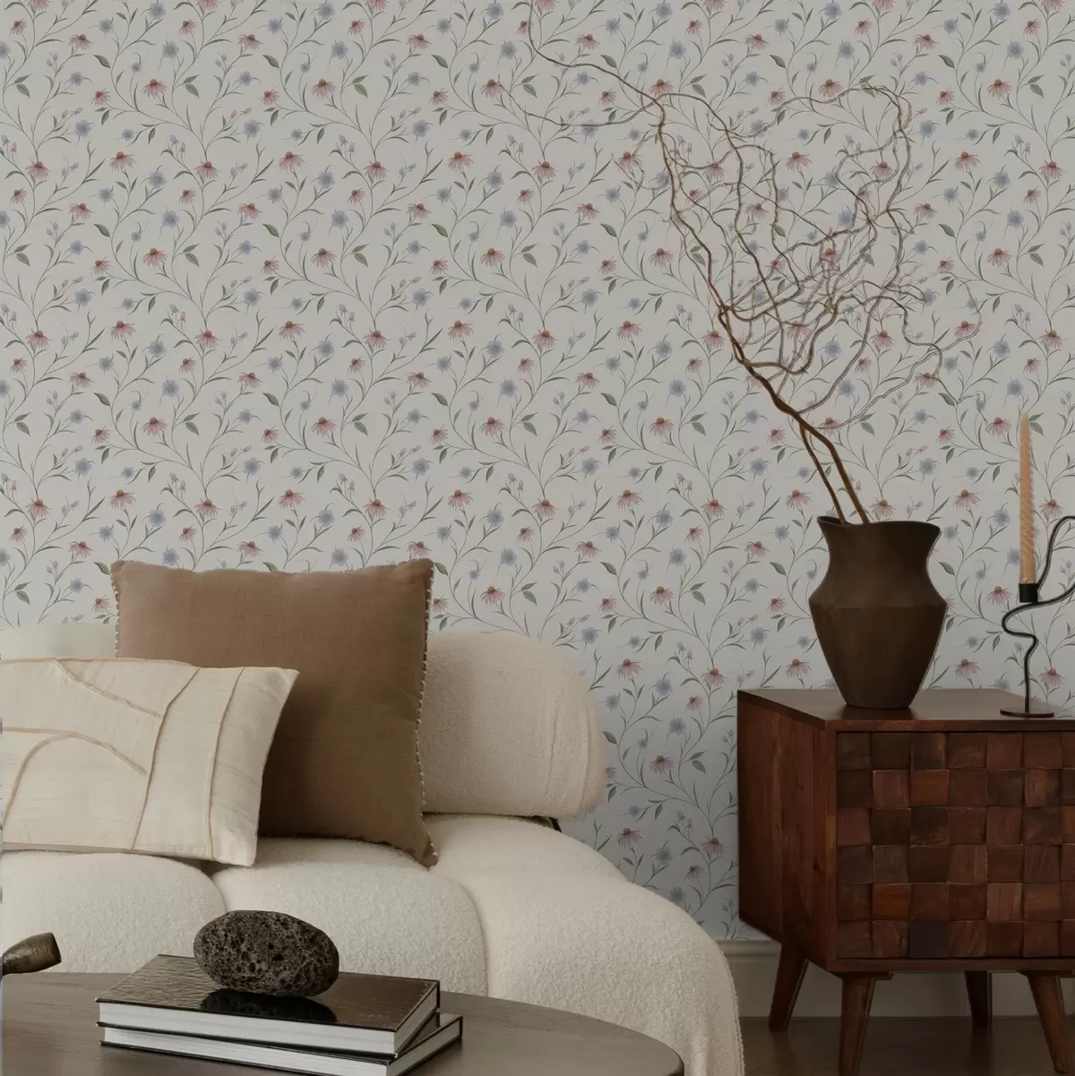 Tapeta Пољске беле раде и ехинацеа на кремастој позадини, лакоћа бр. a00614