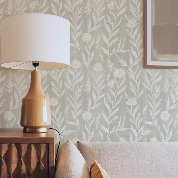 Tapeta Светле траве и цвеће на беж, скицираним линијама бр. a00618