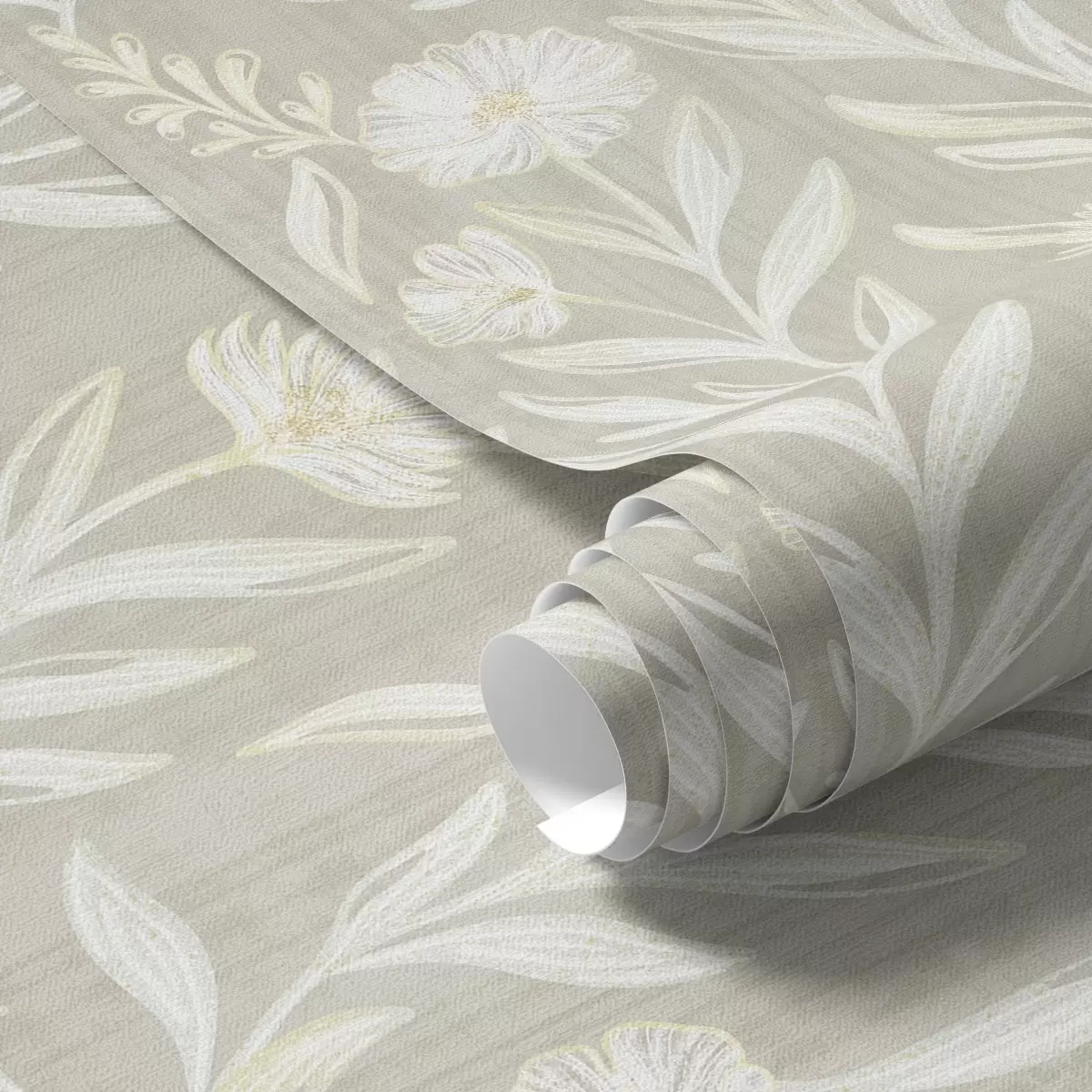Tapeta Светле траве и цвеће на беж, скицираним линијама бр. a00618