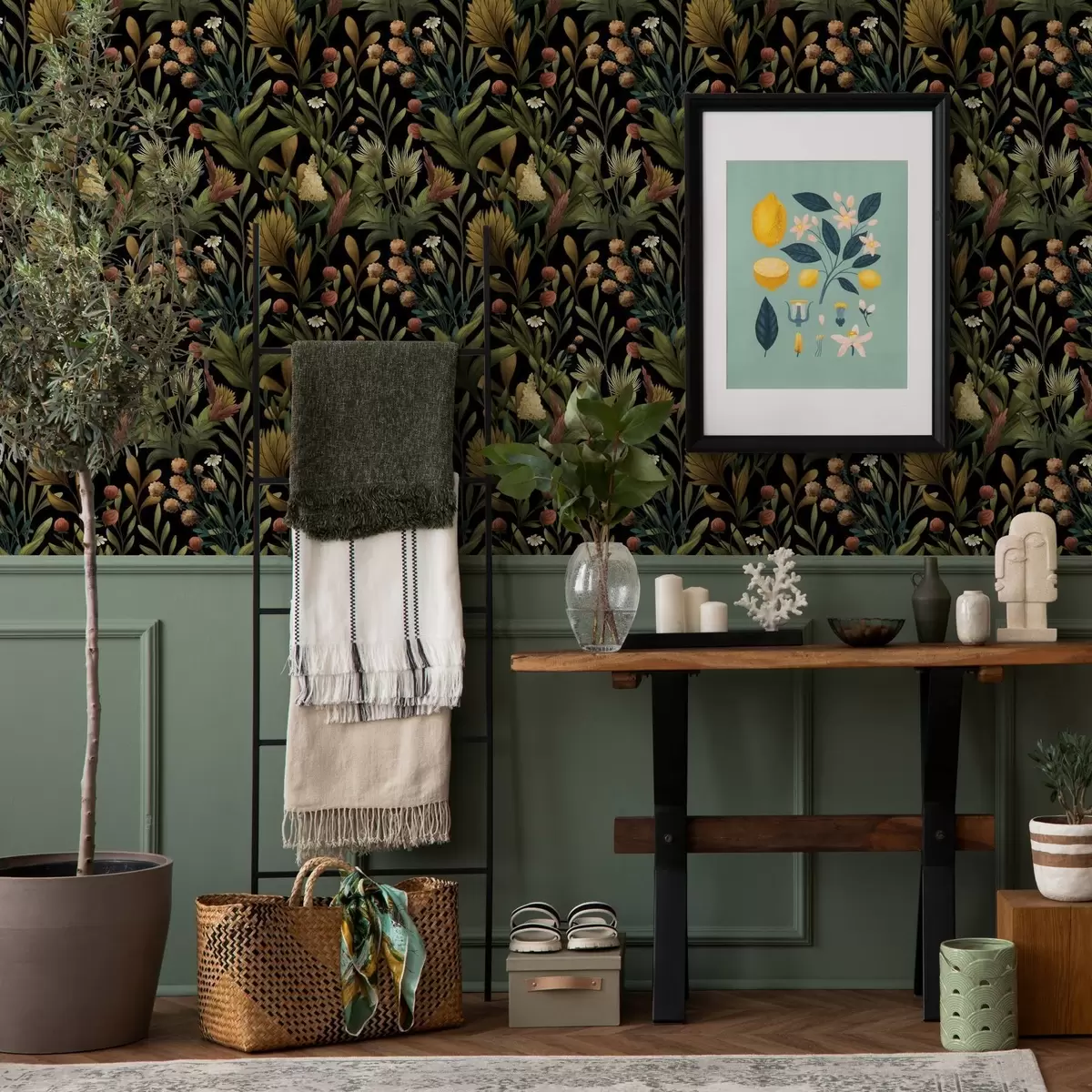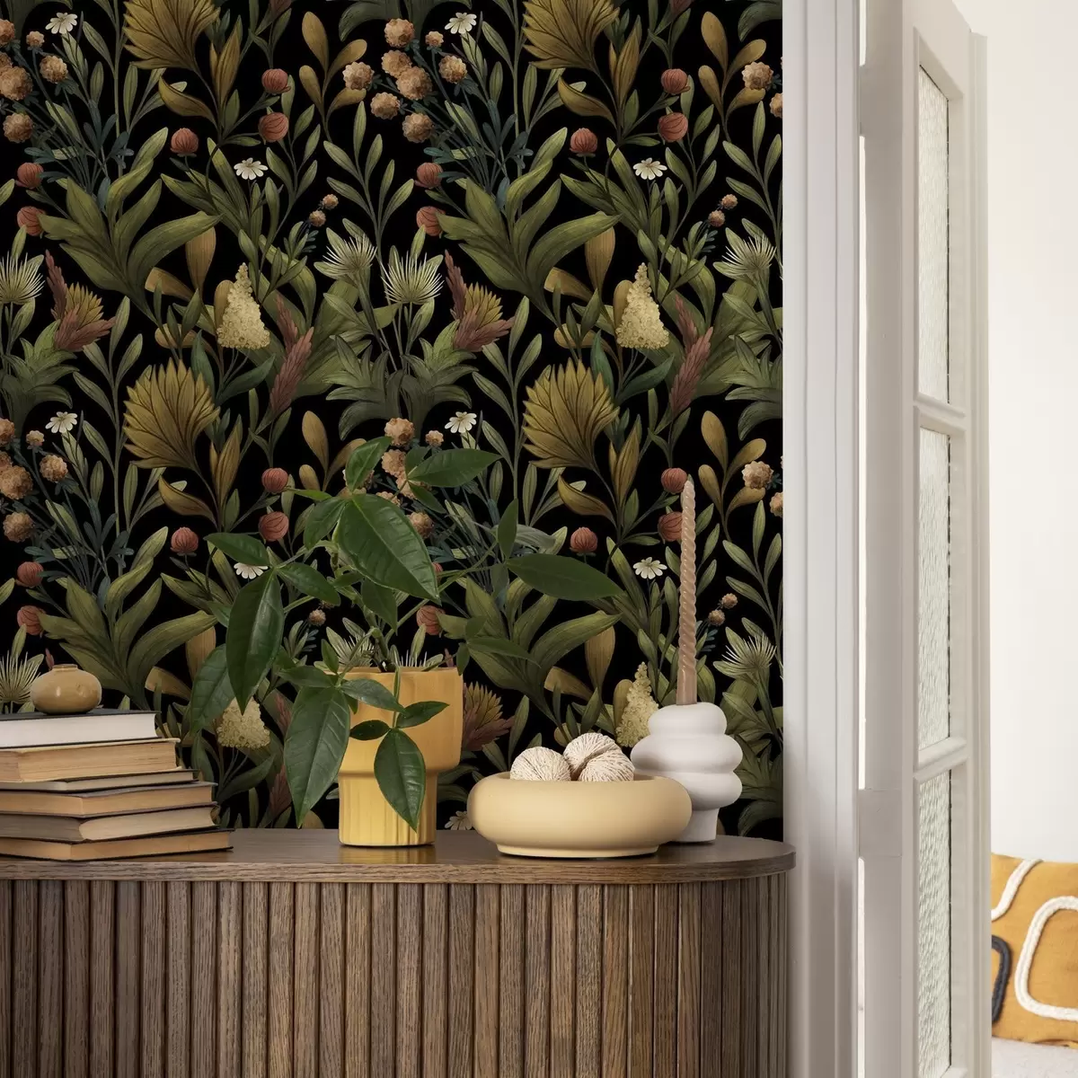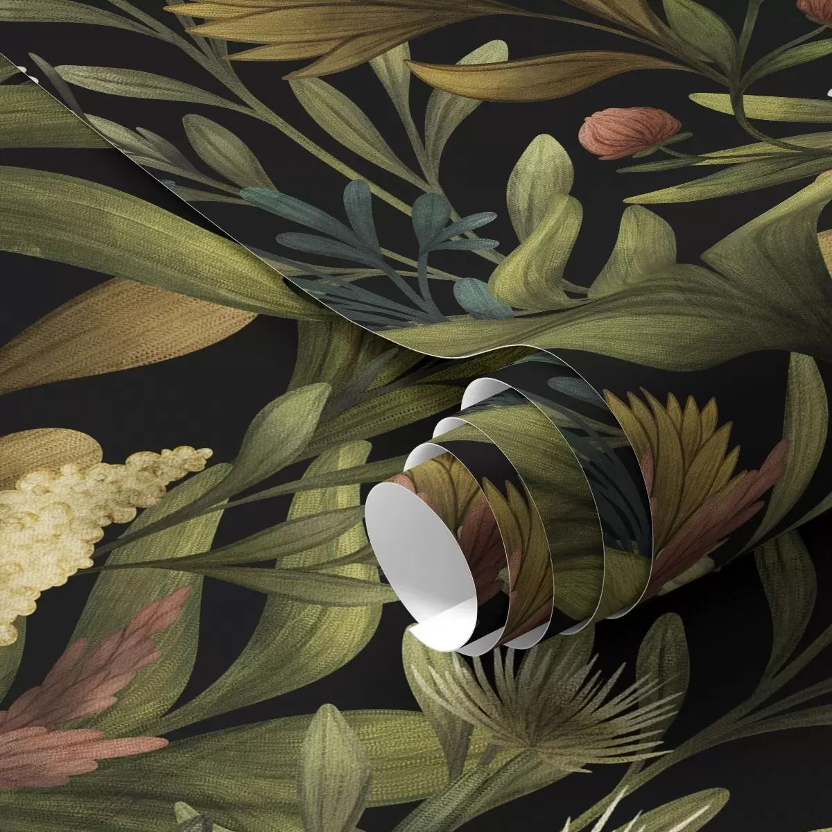 Tapeta Ботаничка башта на црној позадини, топла јесења палета бр. a00619