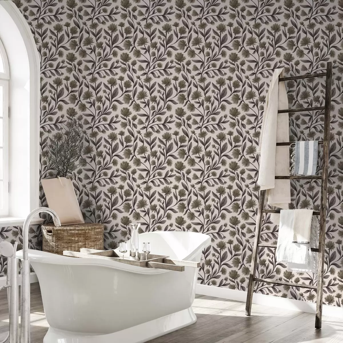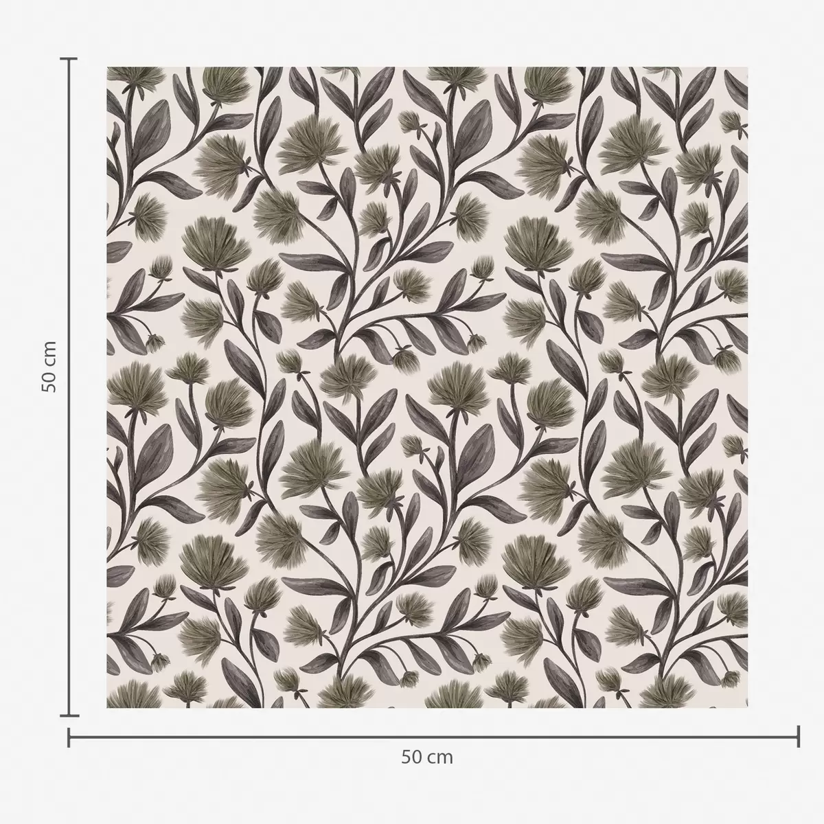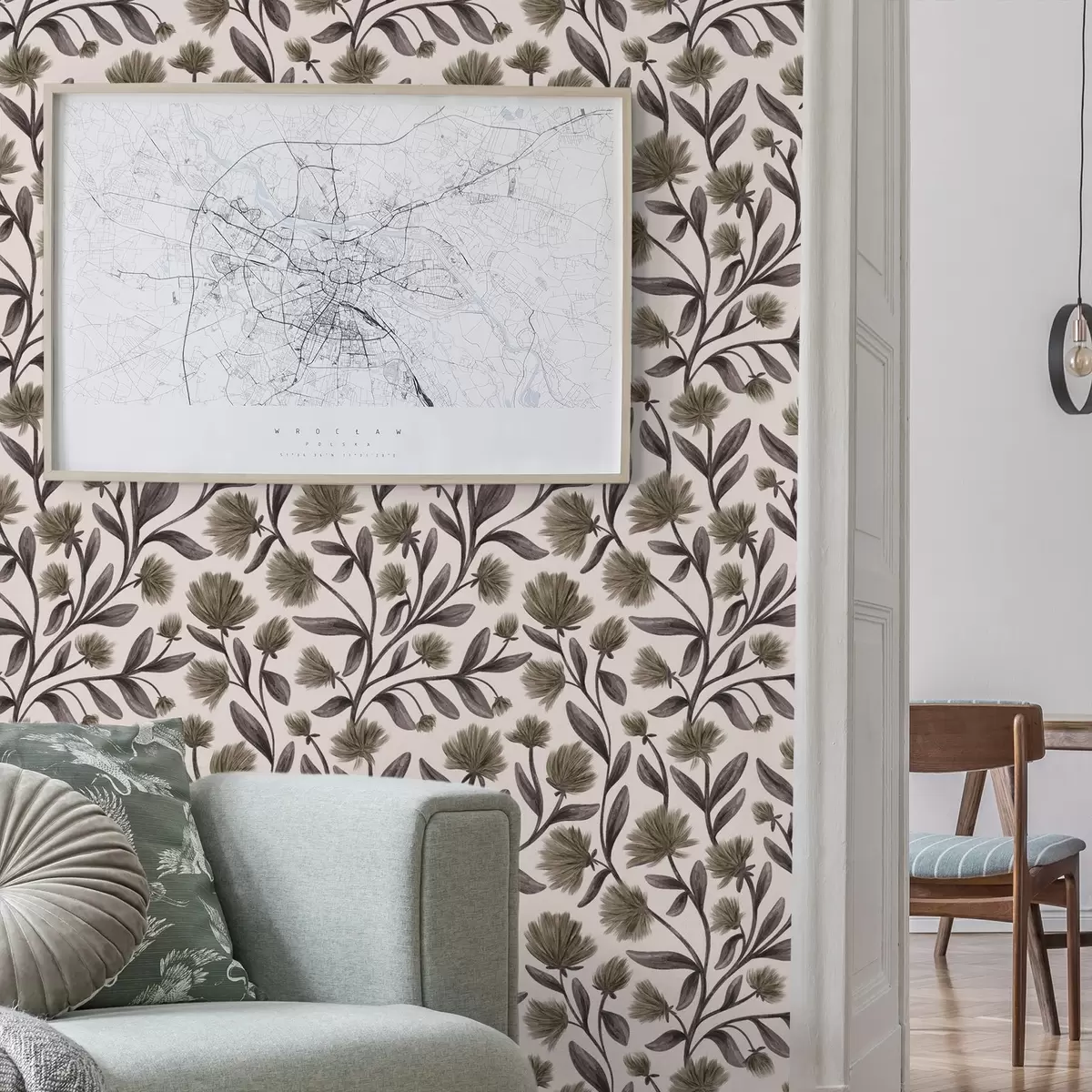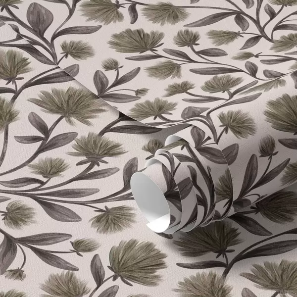 Tapeta Дивље цвеће у сиво-маслинастим тоновима на кремастој позадини бр. a00623v1