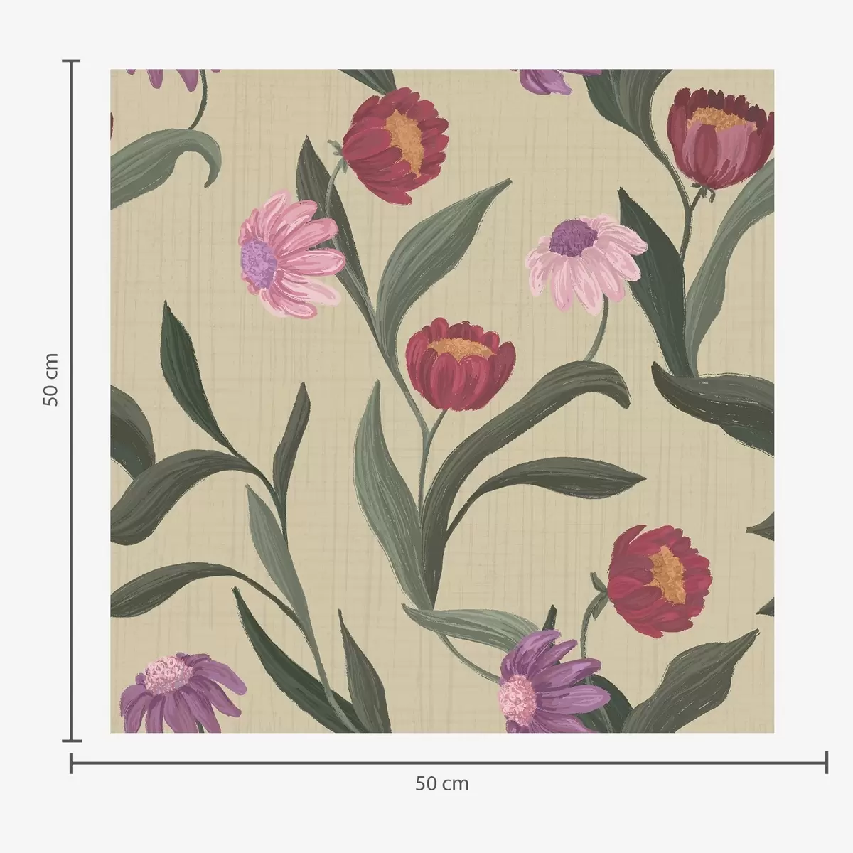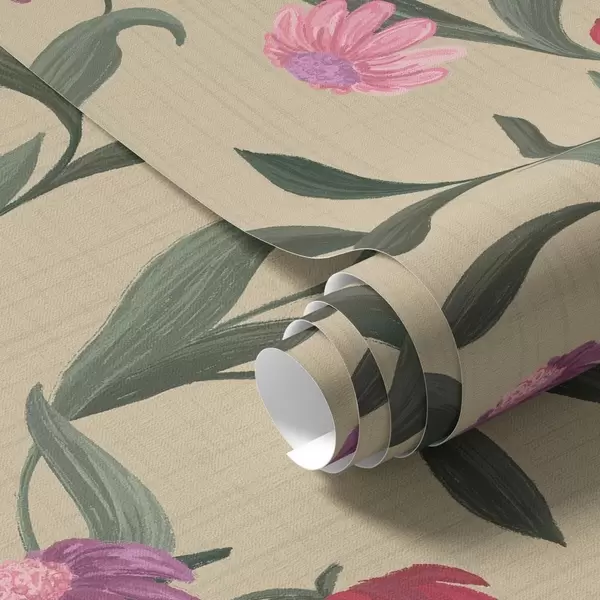 Tapeta Ружичасто-црвени цветови на беж позадини, ручно цртана текстура бр. a00631