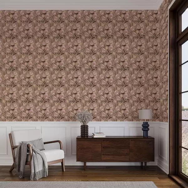 Tapeta Ружичасто цвеће и лептири на топлој смеђој позадини бр. a00633v1
