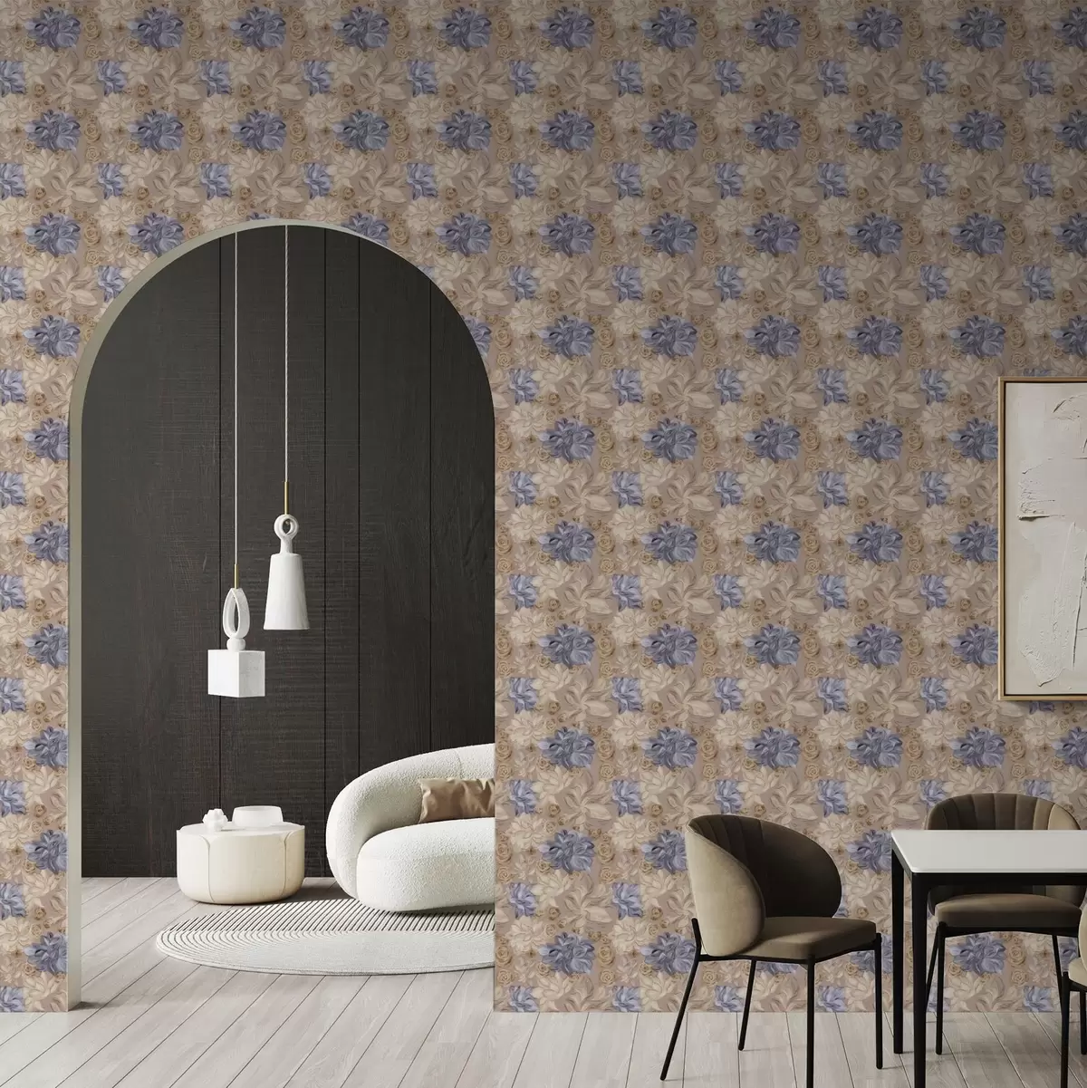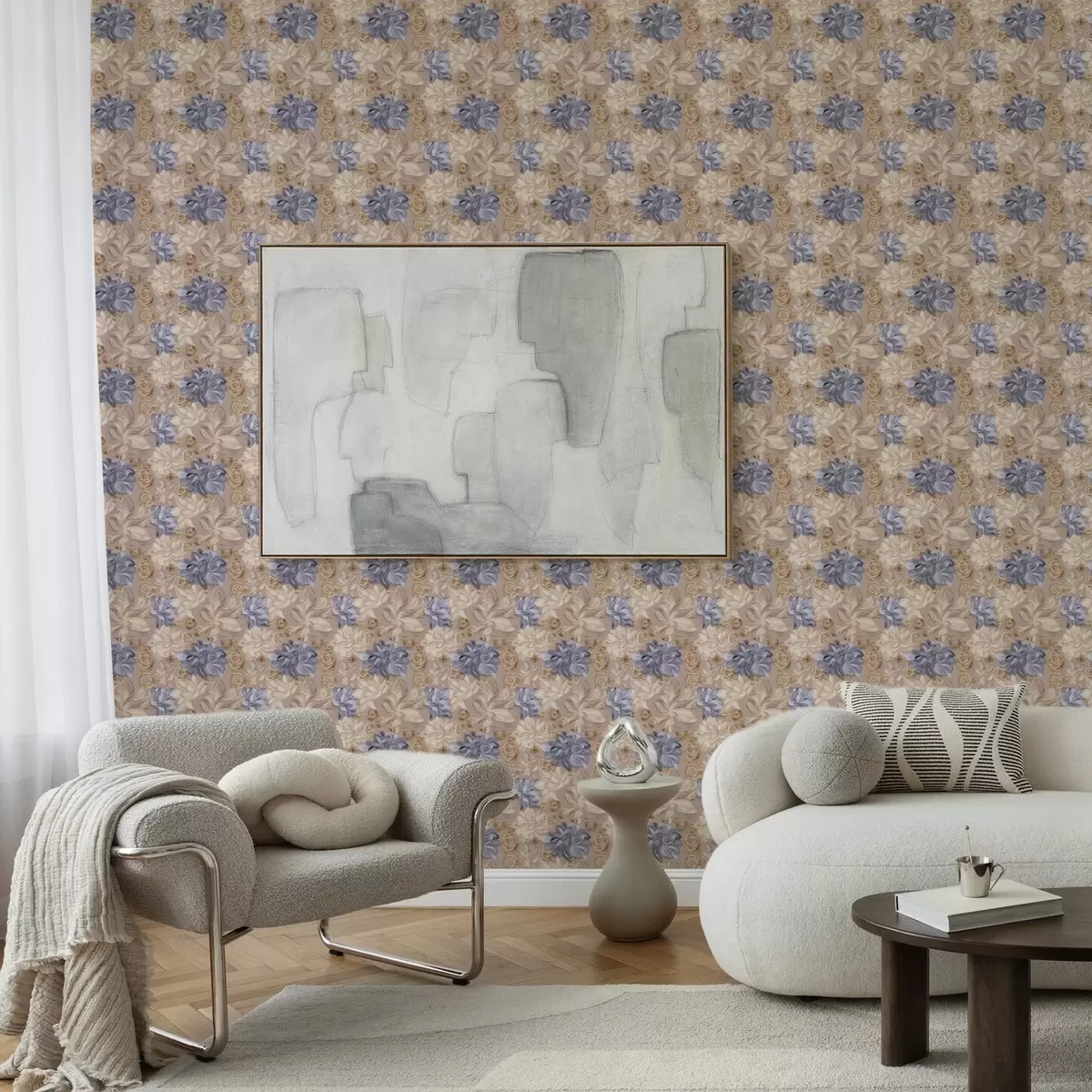 Tapeta Бујно кремасто и плаво цвеће у пастелној палети бр. a00634