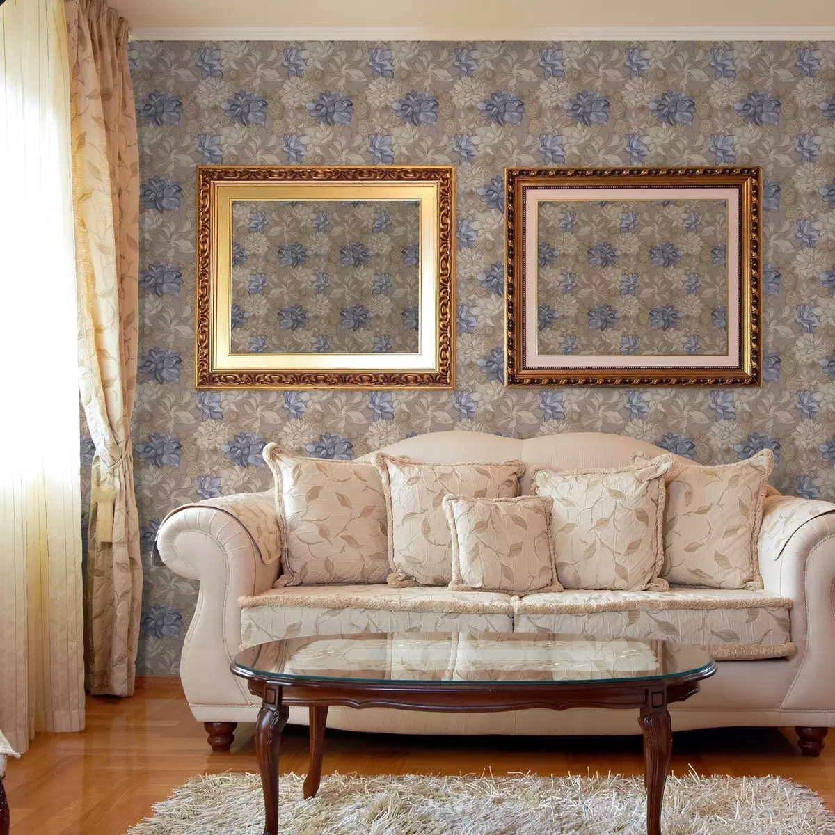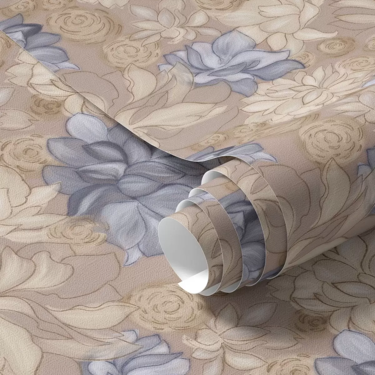 Tapeta Крем и плаво цвеће на топлој беж позадини бр. a00634v1