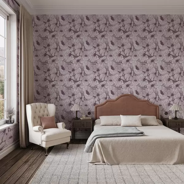 Tapeta Линеарно цвеће у хладној лила-ружичастој палети бр. a00636v1