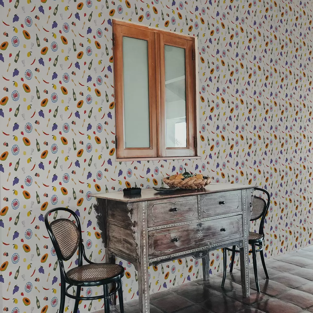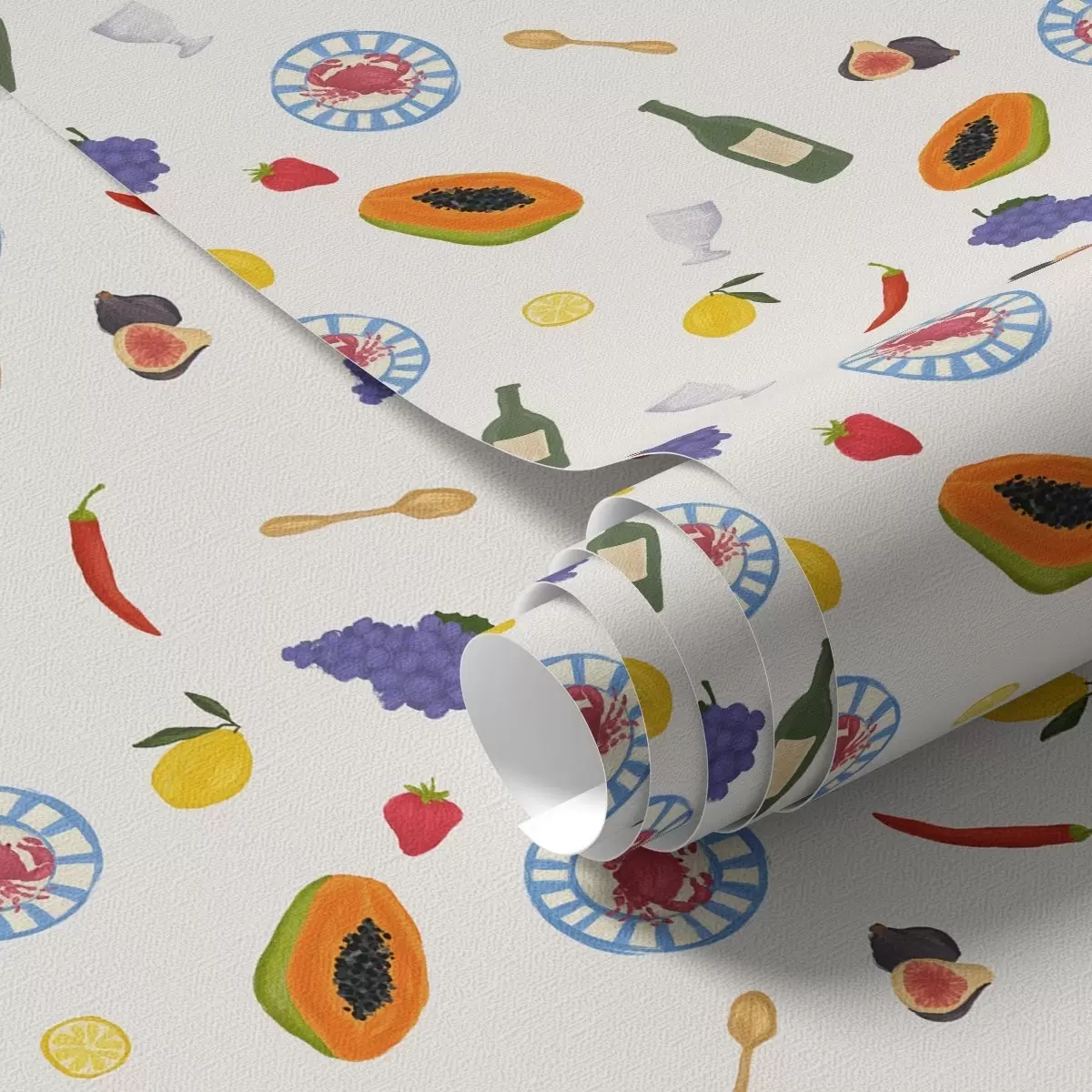 Tapeta Аранжирано воће, вино и зачини на светлој позадини бр. a00639