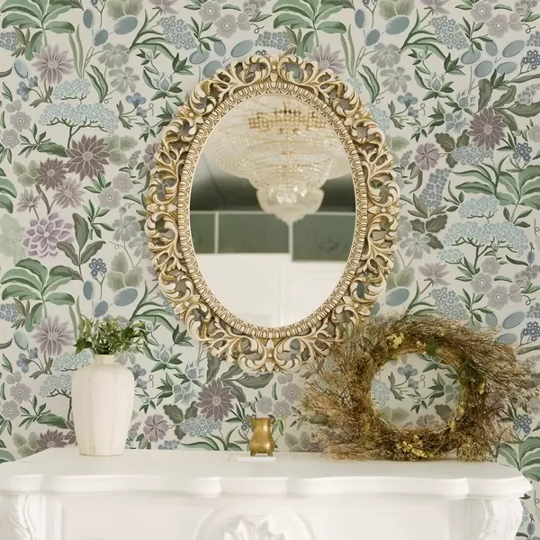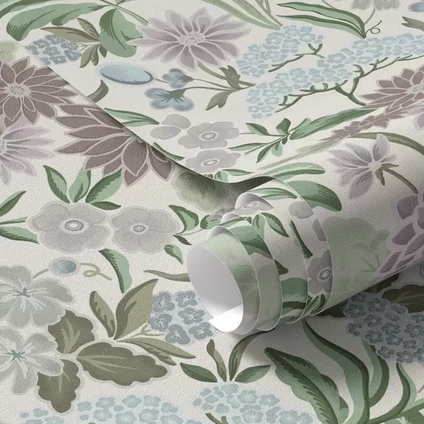 Tapeta Пастелно цвеће и лишће у палети нијанси менте бр. a00642