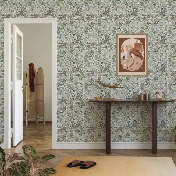 Tapeta Пастелно цвеће и лишће у палети нијанси менте бр. a00642
