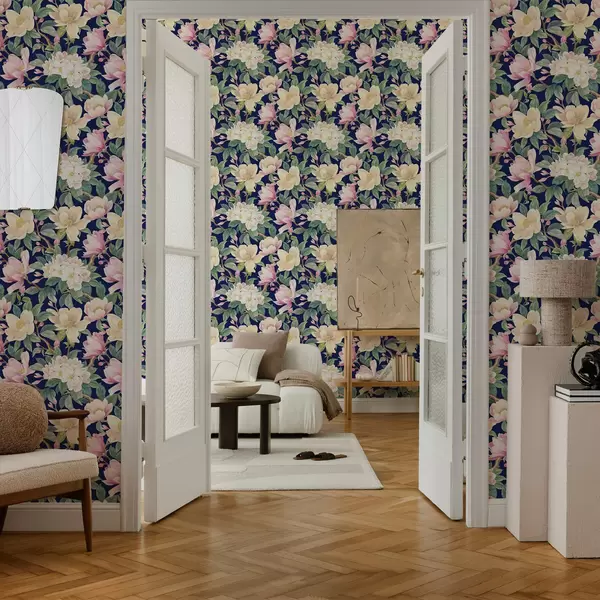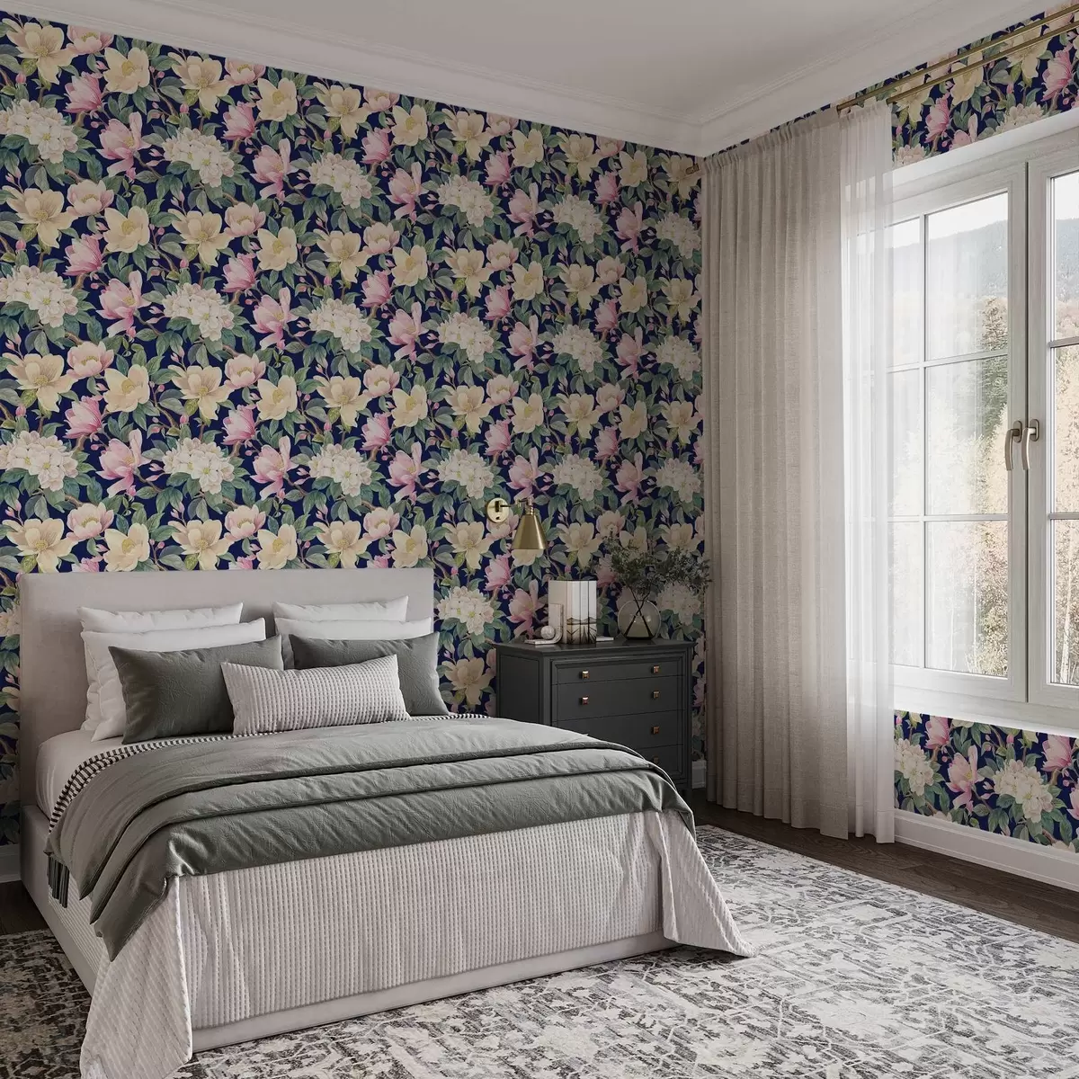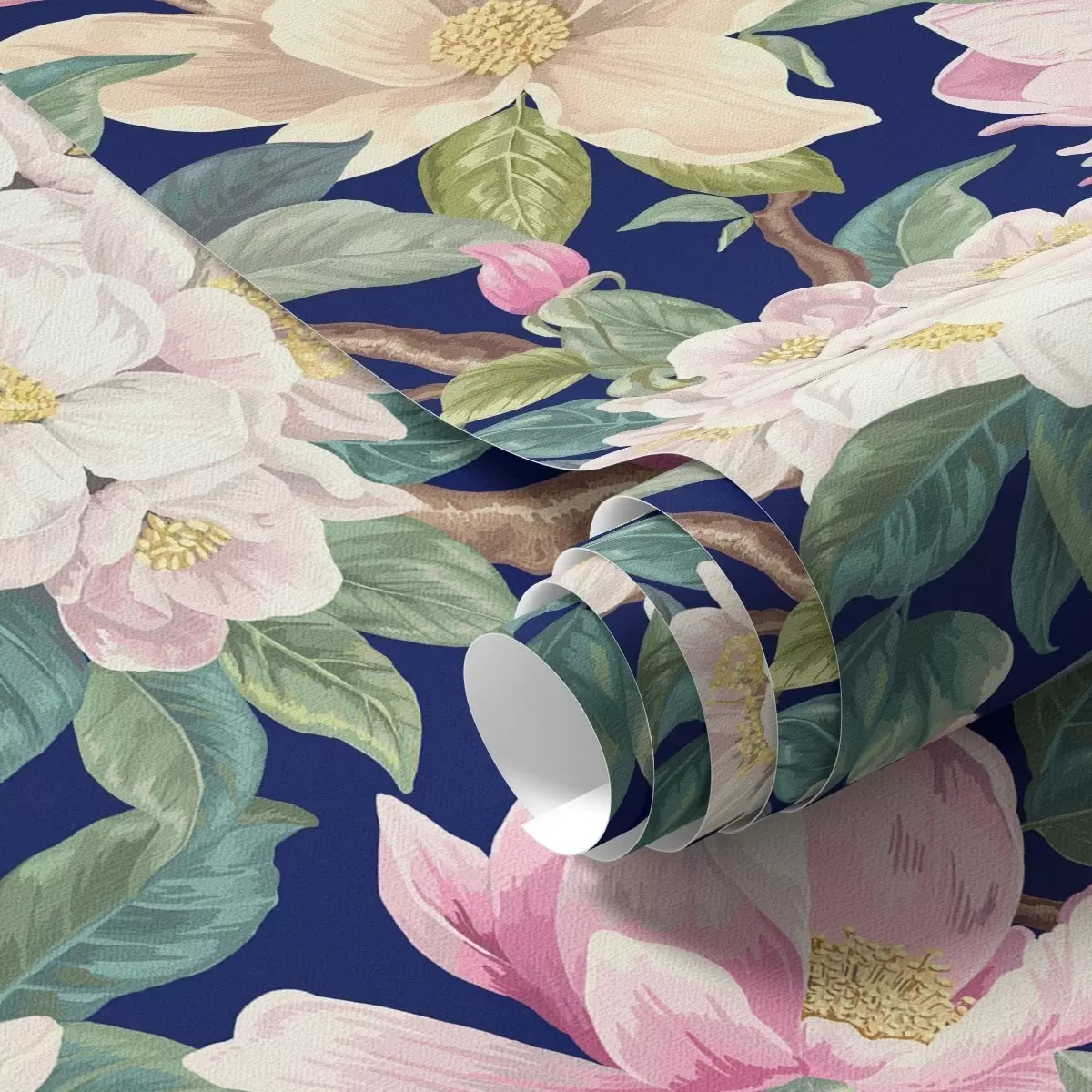 Tapeta Магнолије и пупољци на дубоко тамноплавој позадини бр. a00644v1