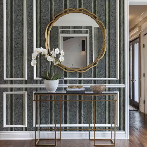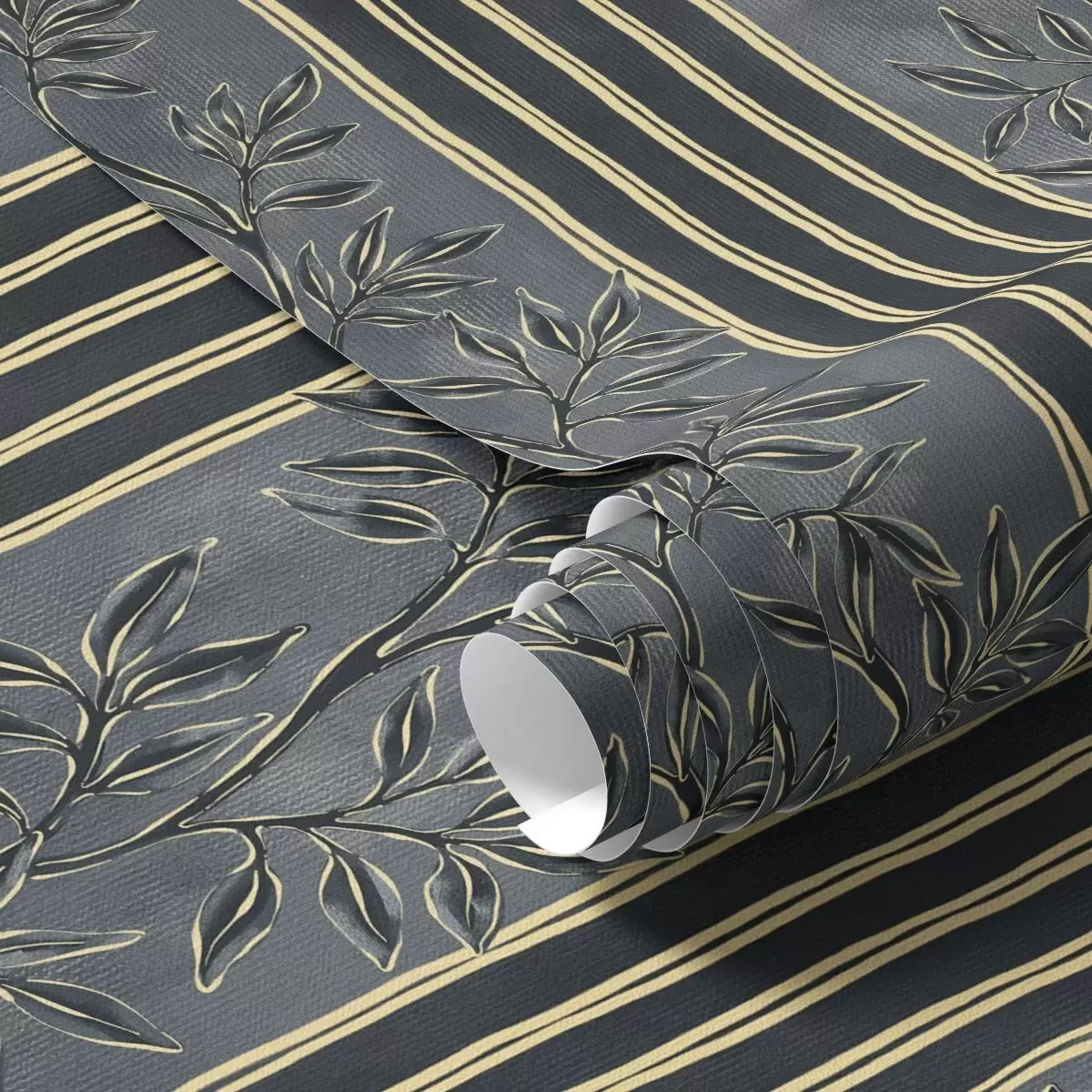 Tapeta Вертикалне пруге са ботаничким узорцима у тамним тоновима бр. a00648