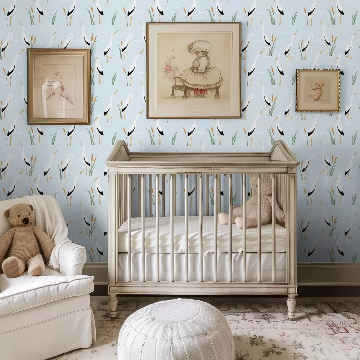 Tapeta Чапље међу трском на нежној плавој позадини бр. a00650v3