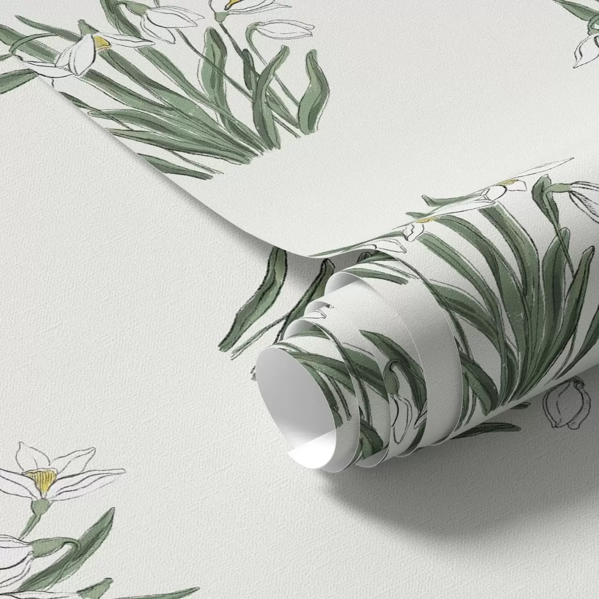 Tapeta Висибабе са зеленим листовима на светло сивој позадини бр. a00651v1