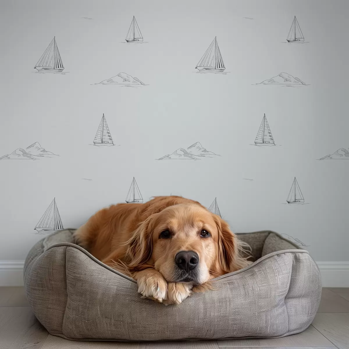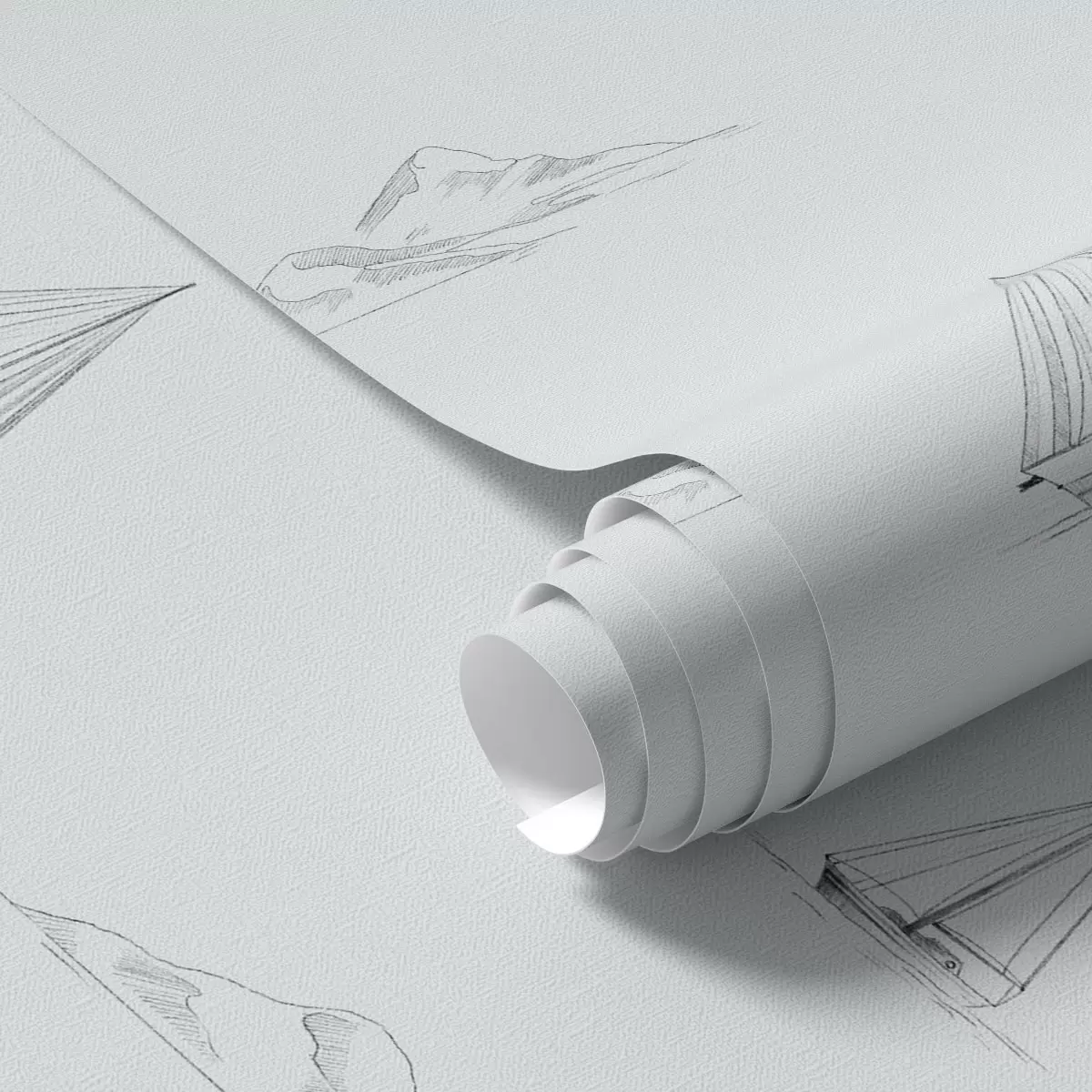 Tapeta Скицирајте јахте и острва, хладна плаво-сива позадина бр. a00654