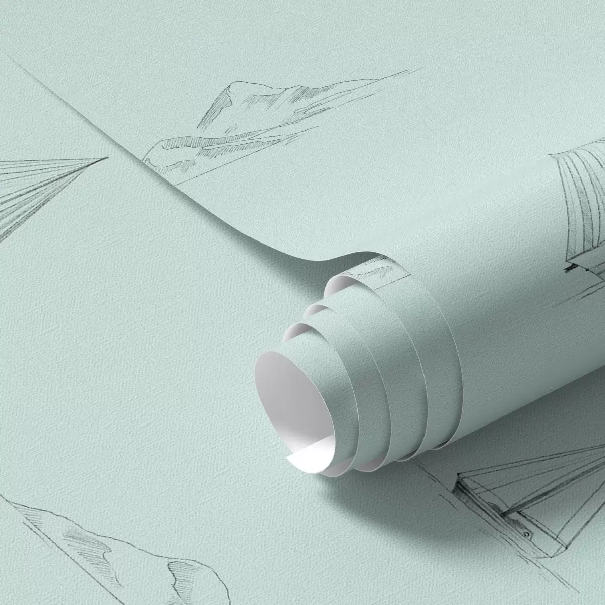 Tapeta Скица јахти и острва, менто зелена позадина бр. a00654v4