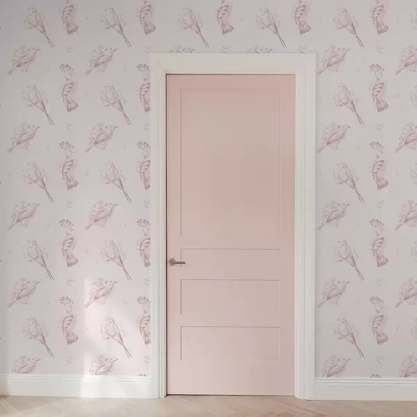 Tapeta Птичји тоалет: скице птица, нежно ружичаста позадина бр. a00656