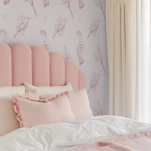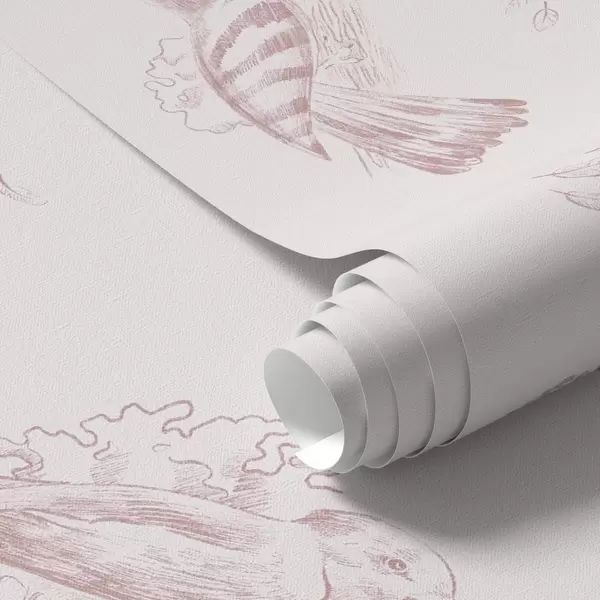 Tapeta Птичји тоалет: скице птица, нежно ружичаста позадина бр. a00656