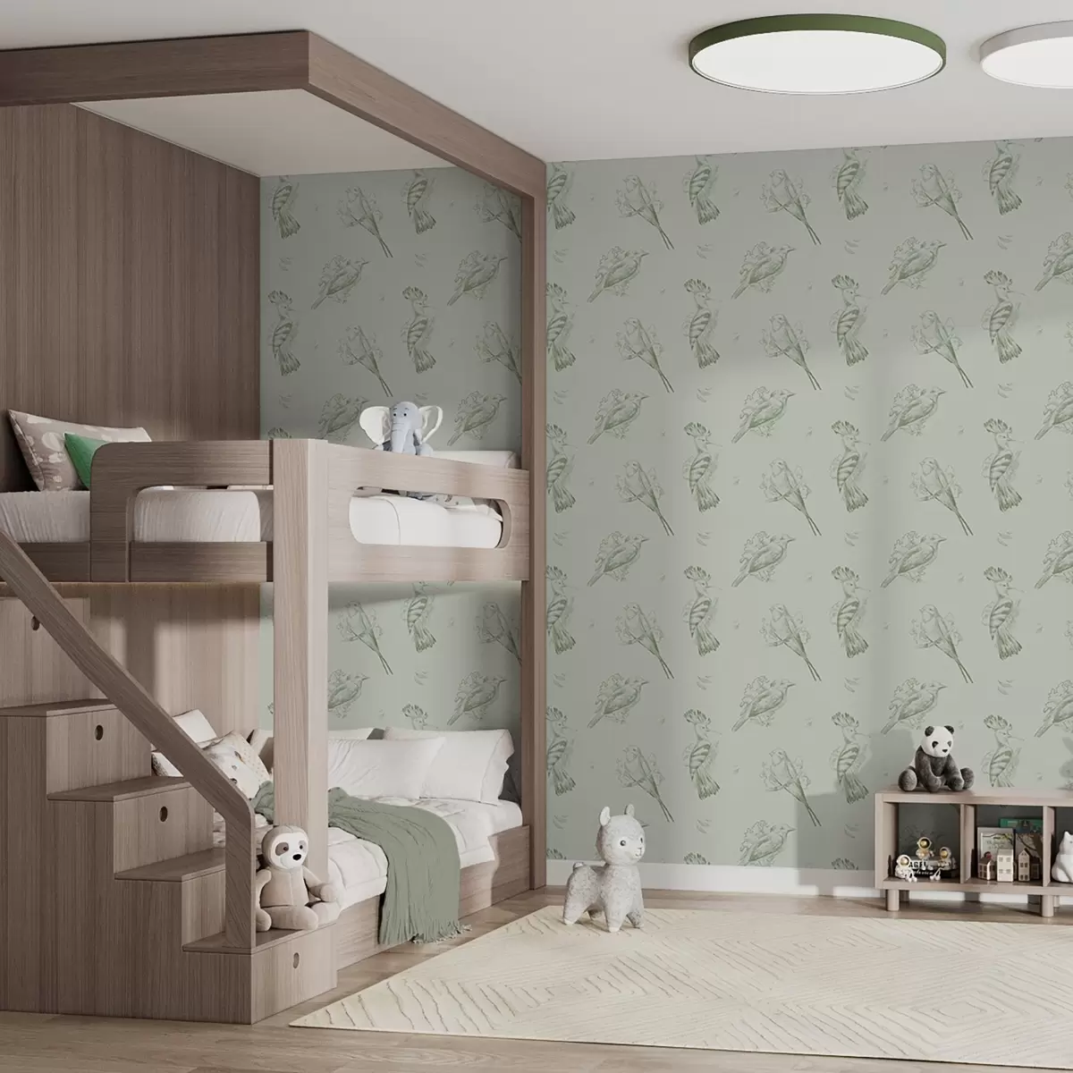Tapeta Птичји шатор: скицирајте птице на сиво-зеленој позадини бр. a00656v1