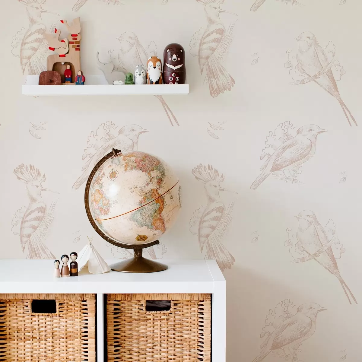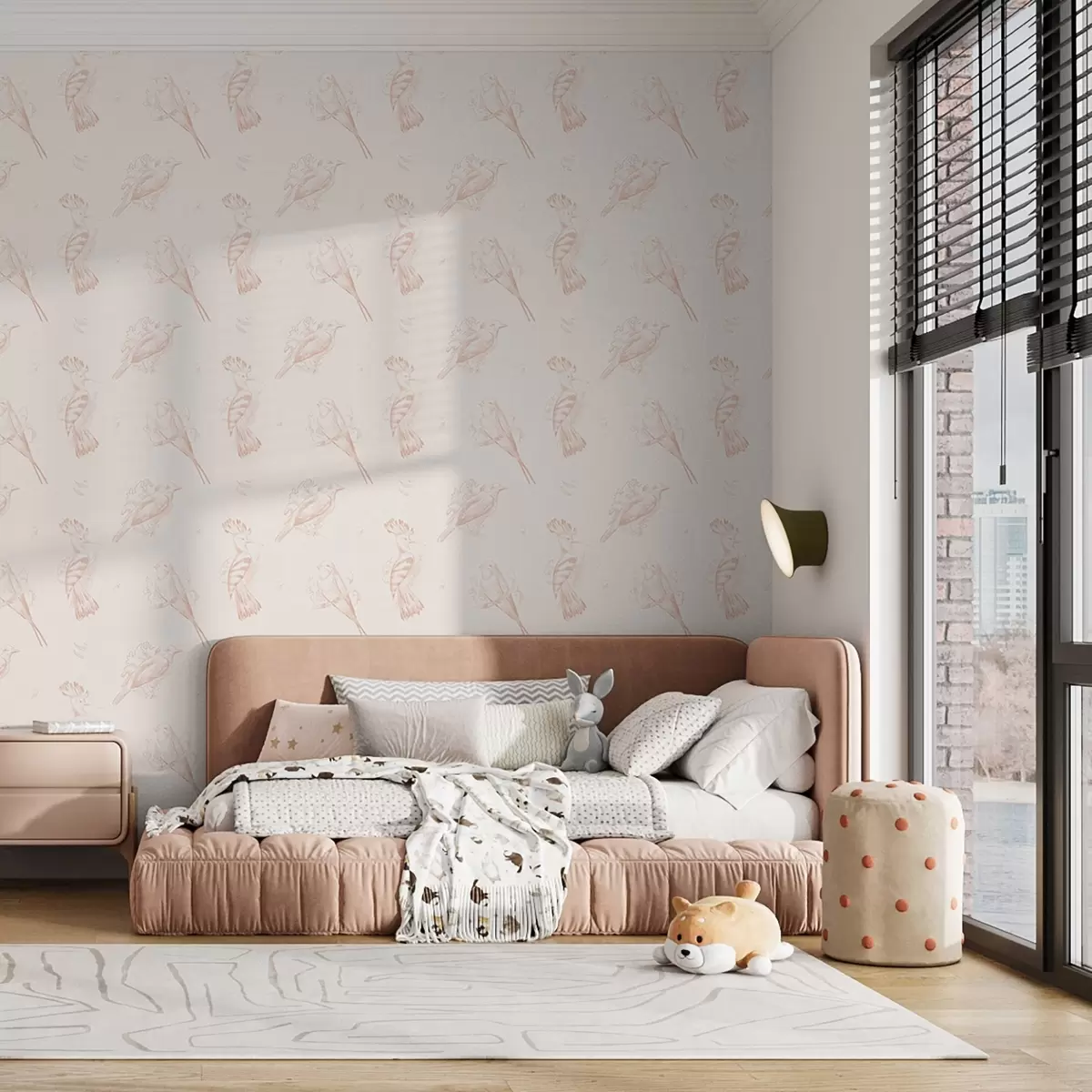 Tapeta Птичји тоалет: скицирајте птице на бресквасто-кремастом платну бр. a00656v2