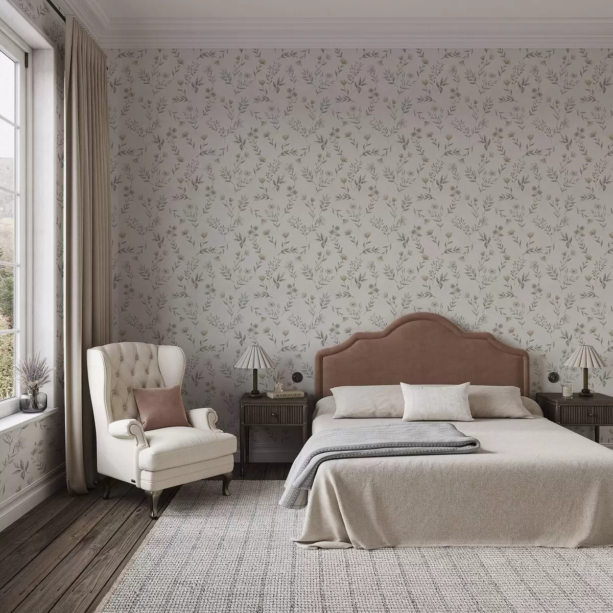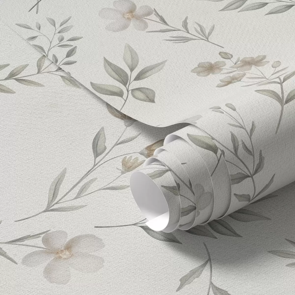 Tapeta Мале акварелне гранчице и цвеће на светлој позадини бр. a00665