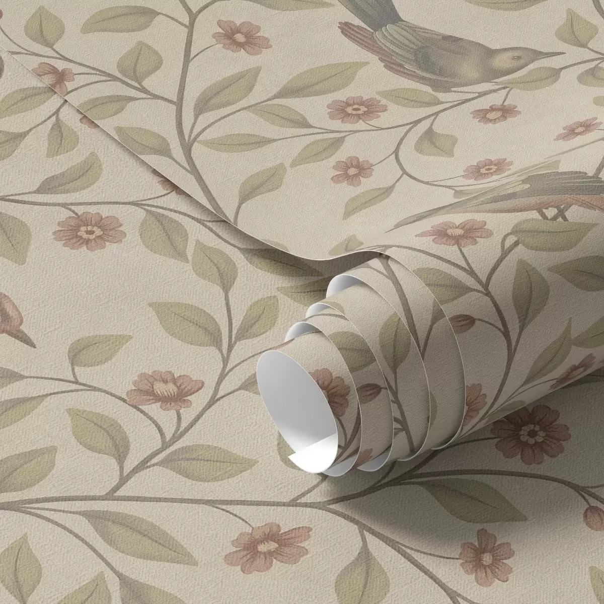 Tapeta Птице на цветним гранама, топла беж позадина бр. a00670