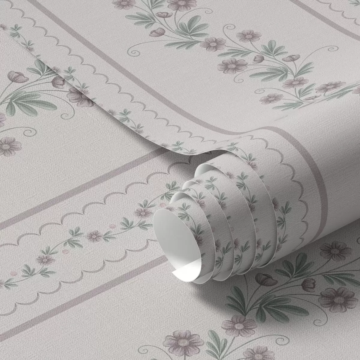 Tapeta Нежне пруге са цветовима лаванде, винтаге бр. a00671