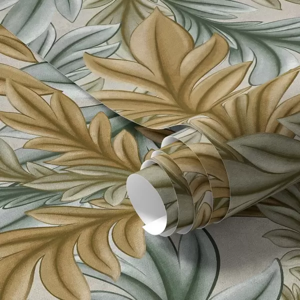 Tapeta Декоративно лишће у топлој окер и зеленој палети бр. a00673