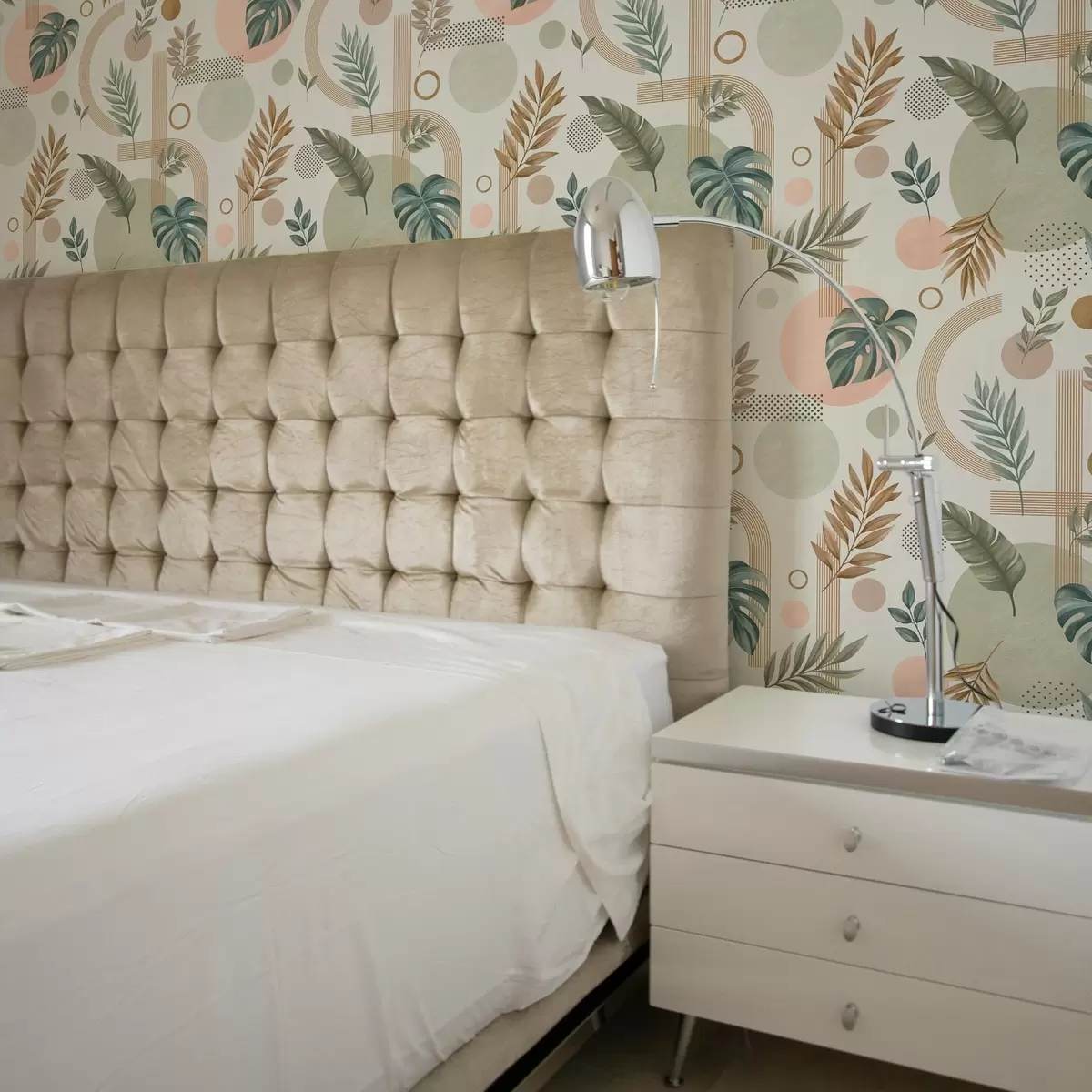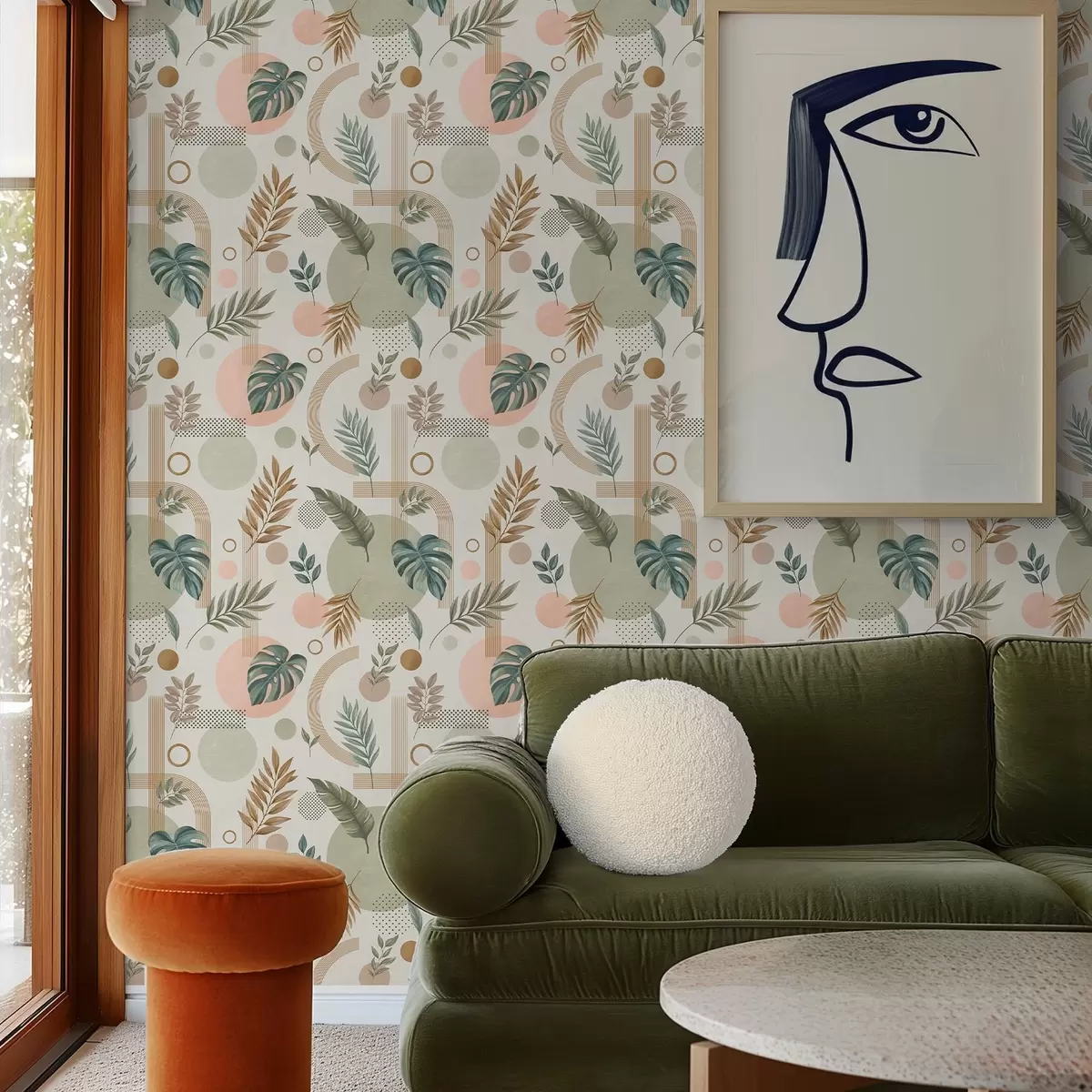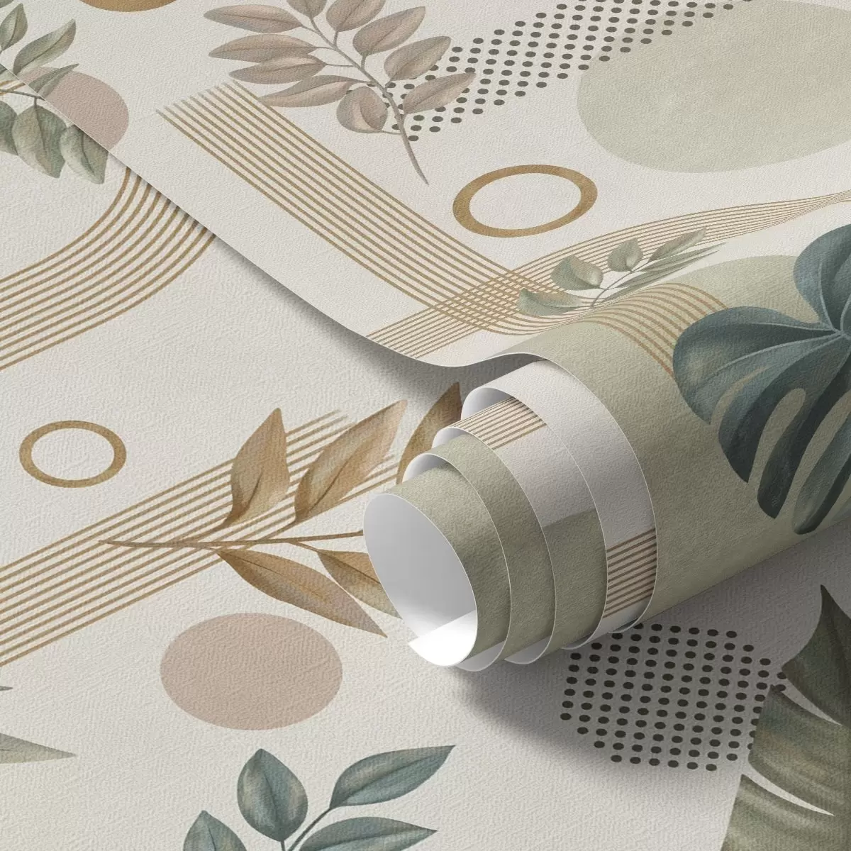Tapeta Листови и геометријски облици у мирним топлим нијансама бр. a00677