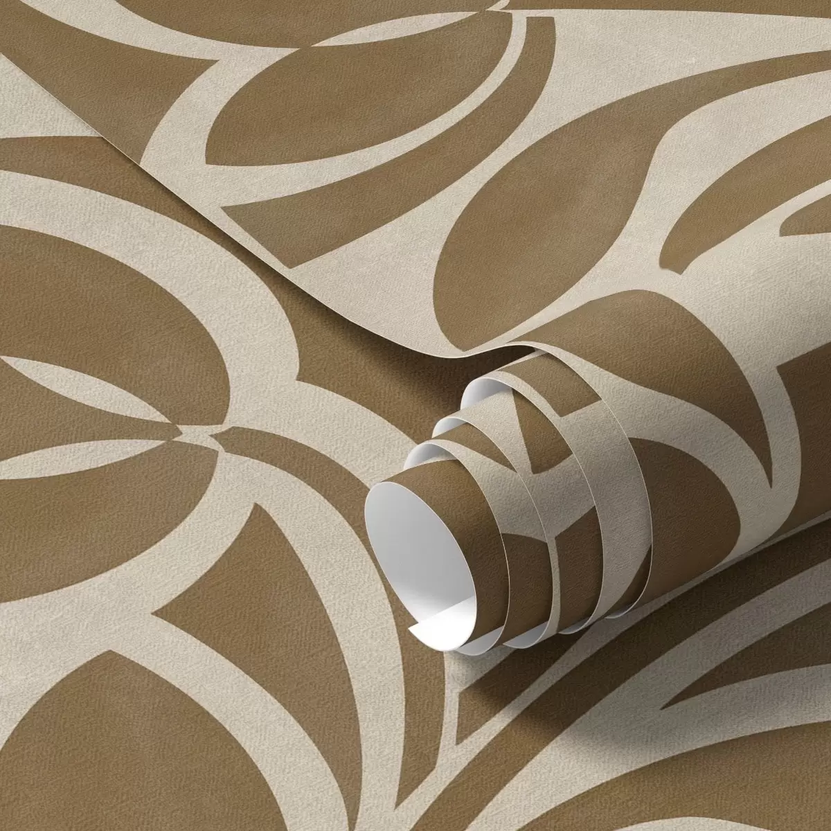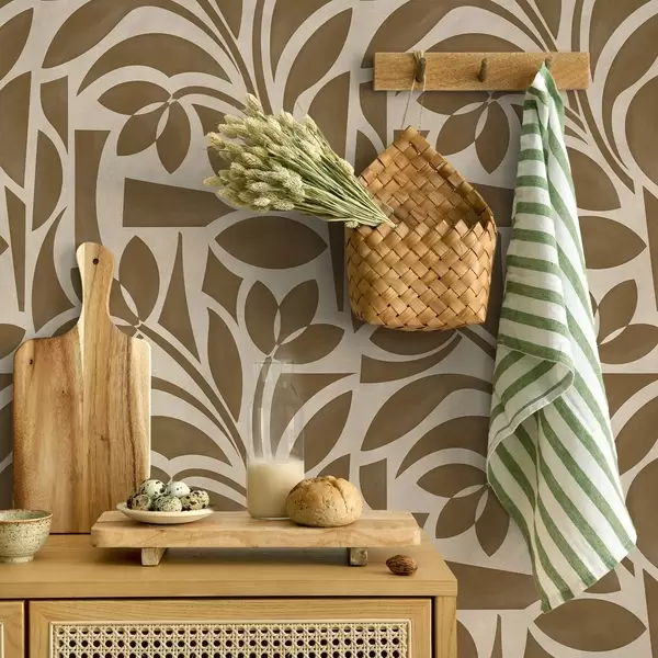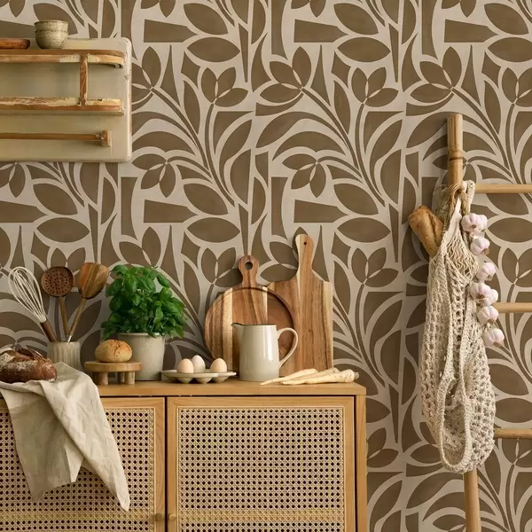 Tapeta Геометријске силуете листова, карамел-смеђе на беж боји бр. a00679