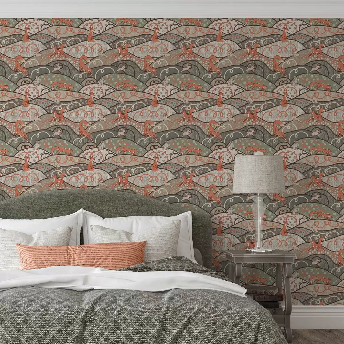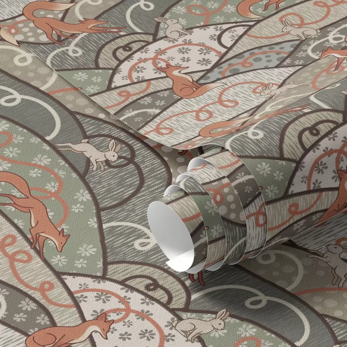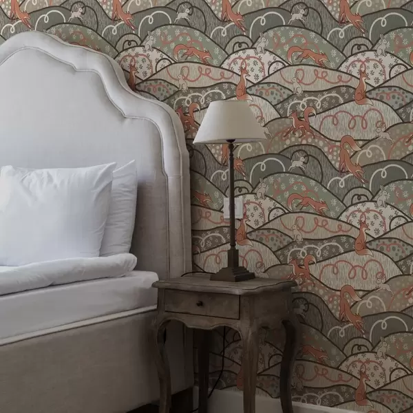 Tapeta Лисице и зечеви на валовитим брдима, ретро узорак бр. a00690