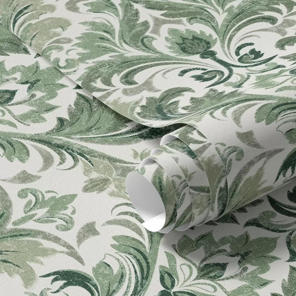 Tapeta Зелени дамаск са рељефном текстуром на светлој позадини бр. a00692