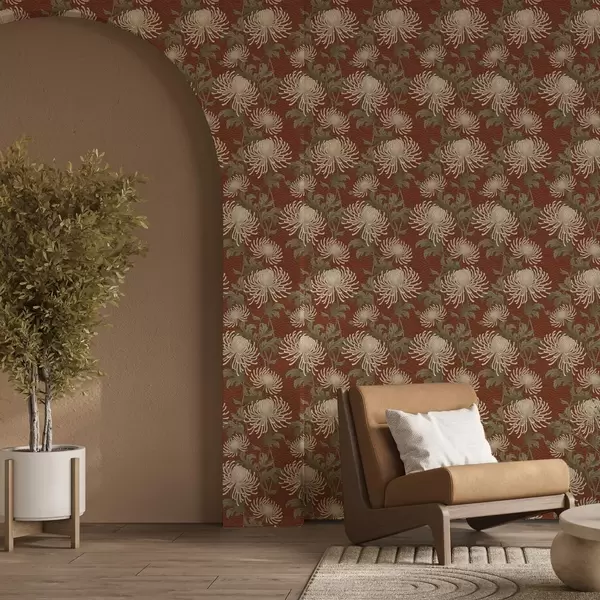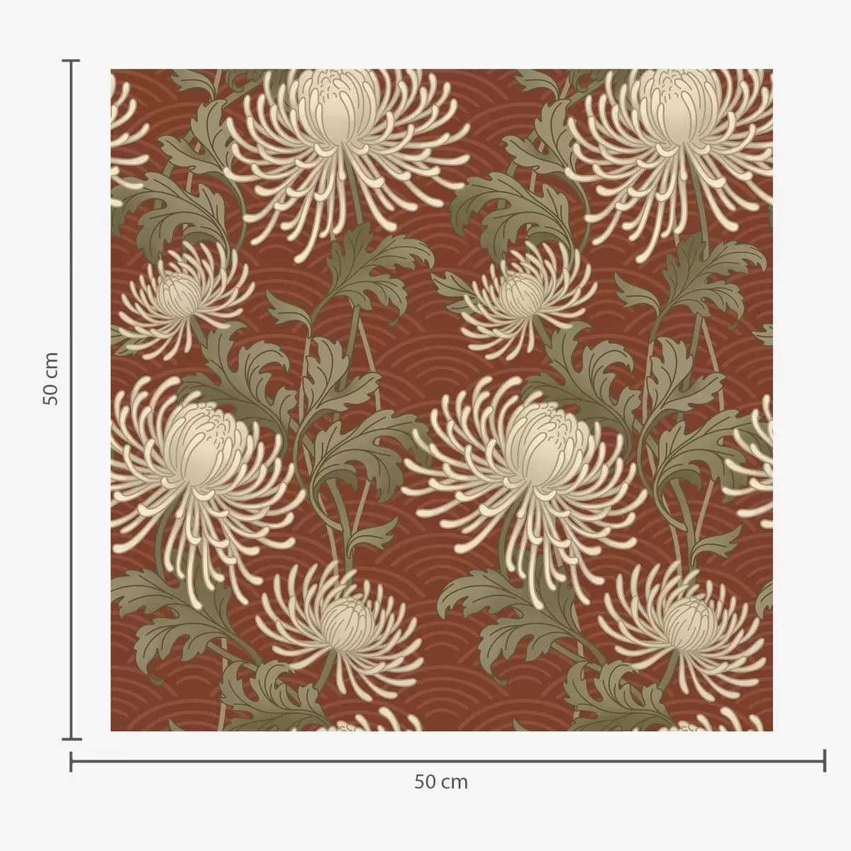 Tapeta Крем хризантеме на теракотној позадини, азијски стил бр. a00693
