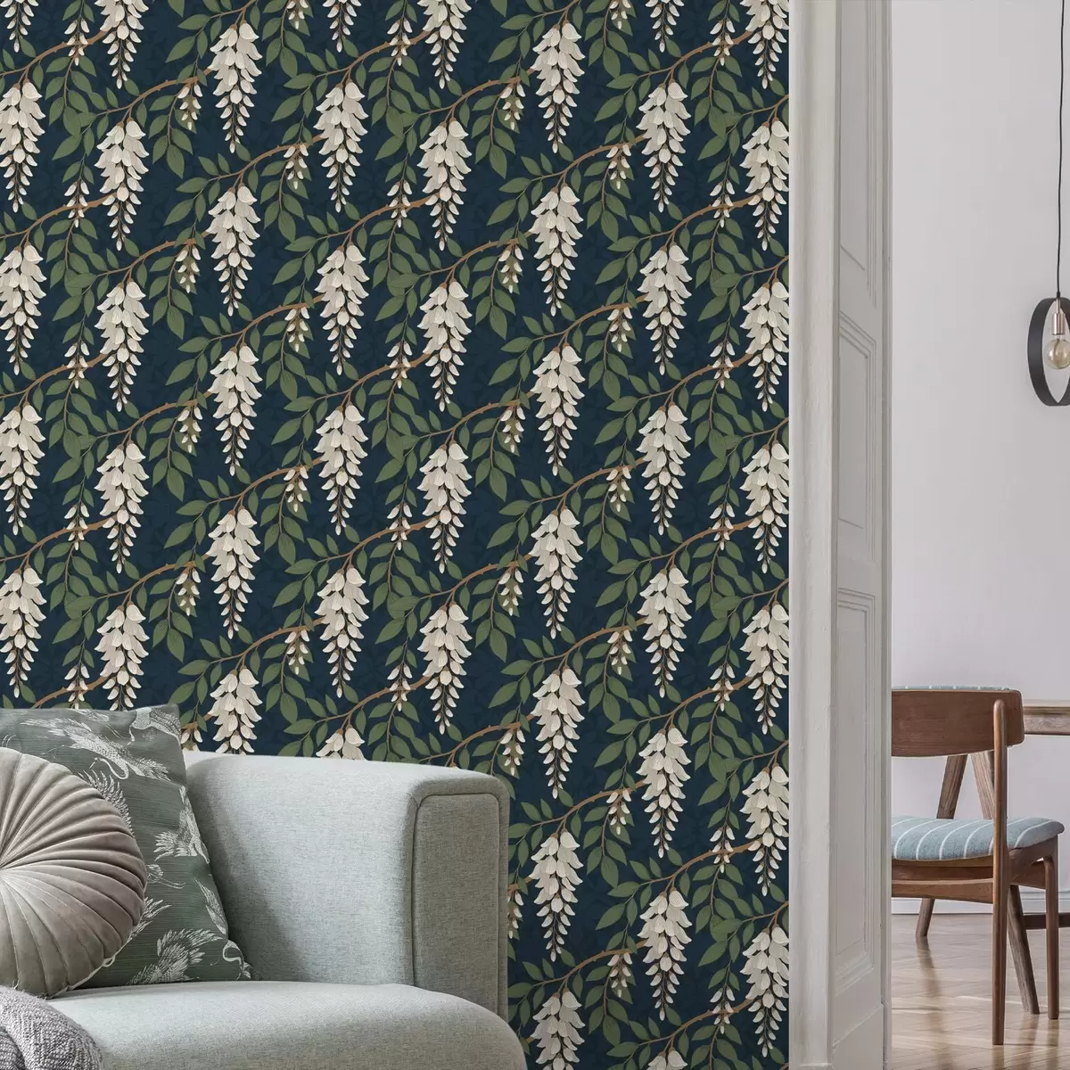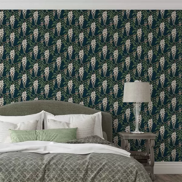 Tapeta Глицинија боје слоноваче на дубоко цијанској позадини бр. a00694v1