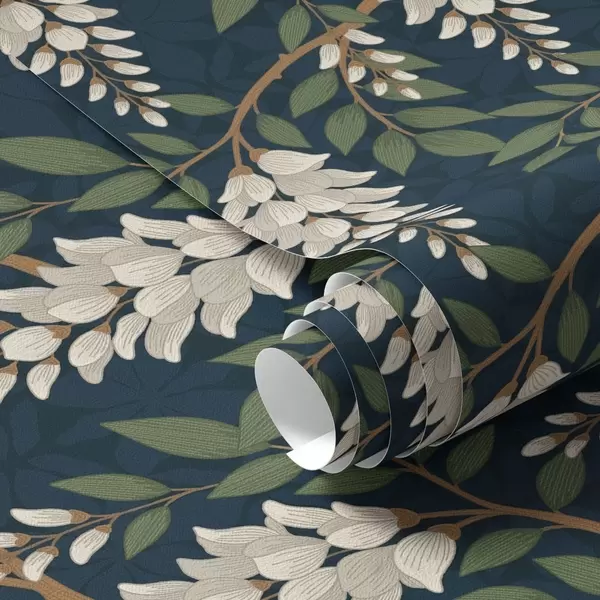 Tapeta Глицинија боје слоноваче на дубоко цијанској позадини бр. a00694v1