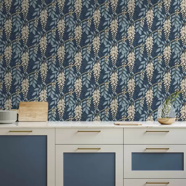 Tapeta Глицинија са плавим листовима на тамноплавој позадини бр. a00694v2