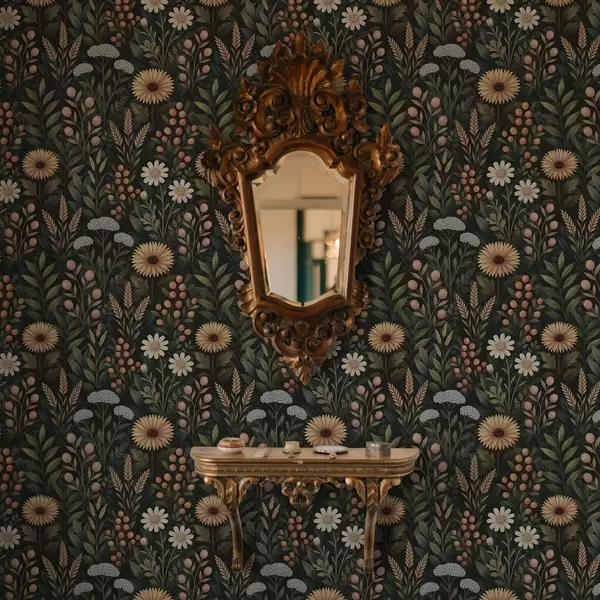 Tapeta Дивље цвеће и бобице на тамној позадини, природни украс бр. a00707