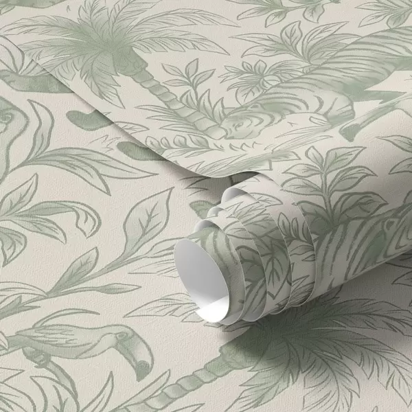 Tapeta Тигрови и тропске птице међу палмама на светлој позадини бр. a00711