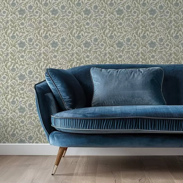 Tapeta Жалфијасто-сиви цветни орнамент на светлој позадини бр. a00712